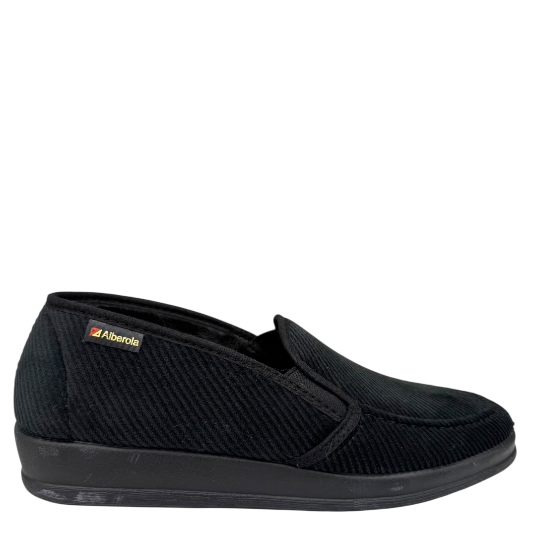 Pantoufles fermées BLZ en textile respirant noir pour un confort durable. Semelle antidérapante idéale pour la maison. Commandez-les en ligne dès maintenant