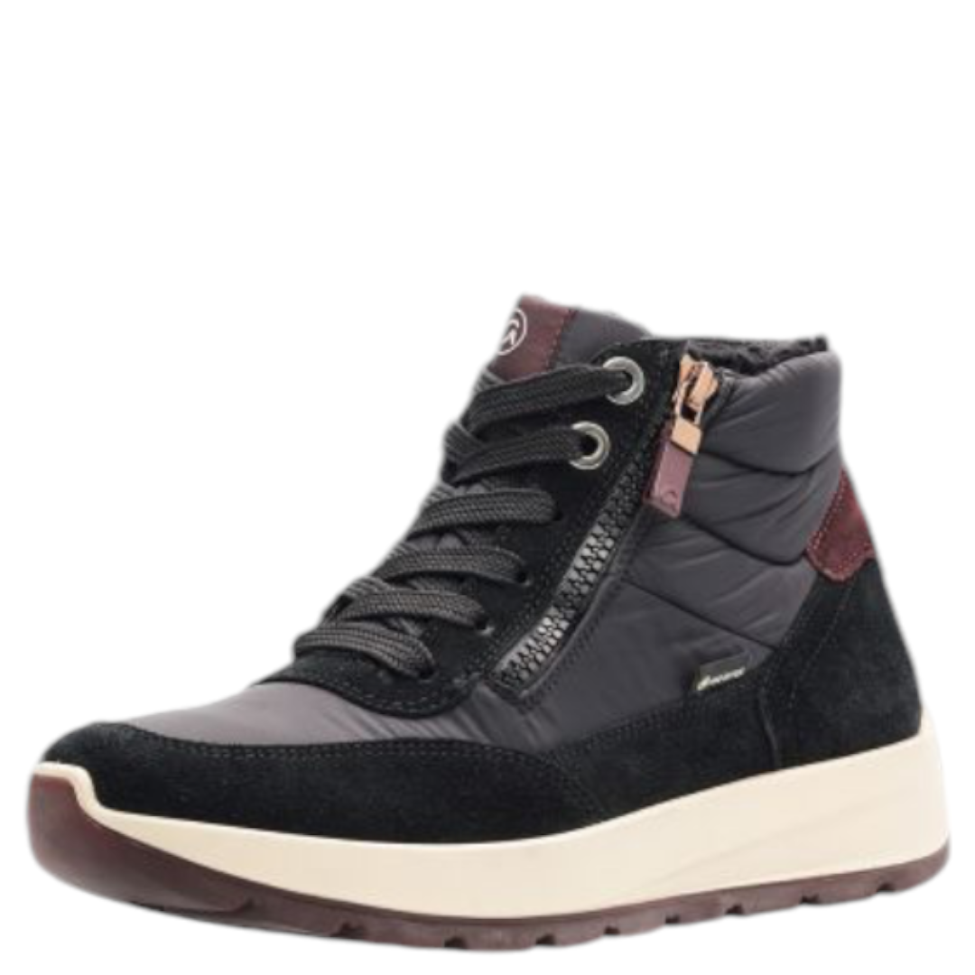 Sneakers montantes Ara noires avec doublure fourrée et membrane Gore-Tex, pour des pieds au sec et bien au chaud. Largeur H ultra-confort et semelle antidérapante pour un hiver tout en sérénité. Commandez en ligne dès maintenant