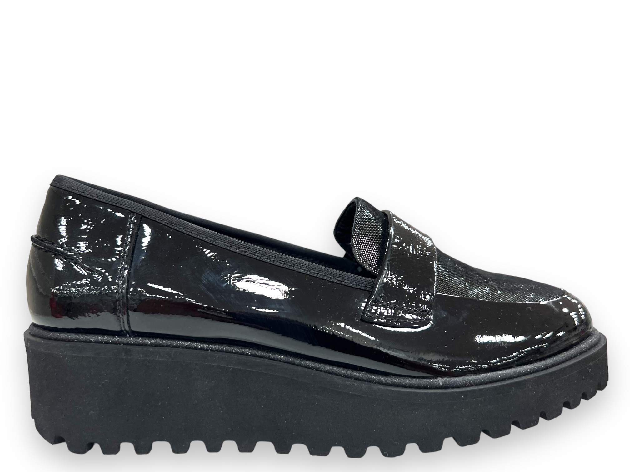 Mocassins compensés Ara en cuir noir véritable, élégance et confort réunis. Coupe intermédiaire pour un chaussant parfait. Ajoutez-les à votre panier en ligne