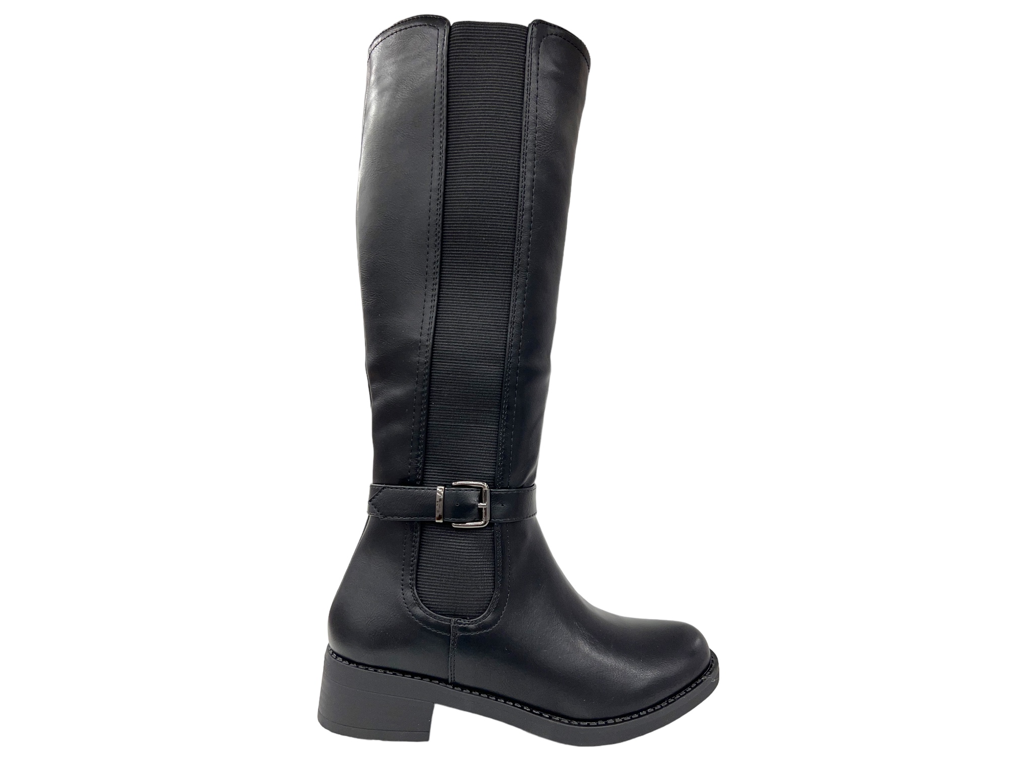 Bottes noires en cuir synthétique léger et résistant à l’eau. Mollet extensible pour un ajustement parfait. Commandez en ligne dès maintenant
