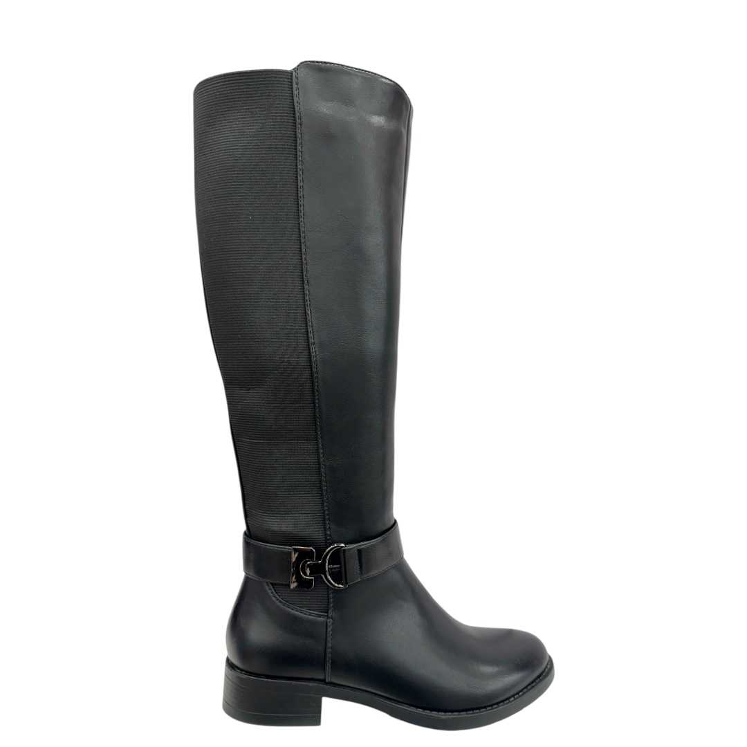 Bottes à talon 4 cm en cuir synthétique noir, élégantes et résistantes. Idéales pour un confort quotidien raffiné. Commandez en ligne dès maintenant