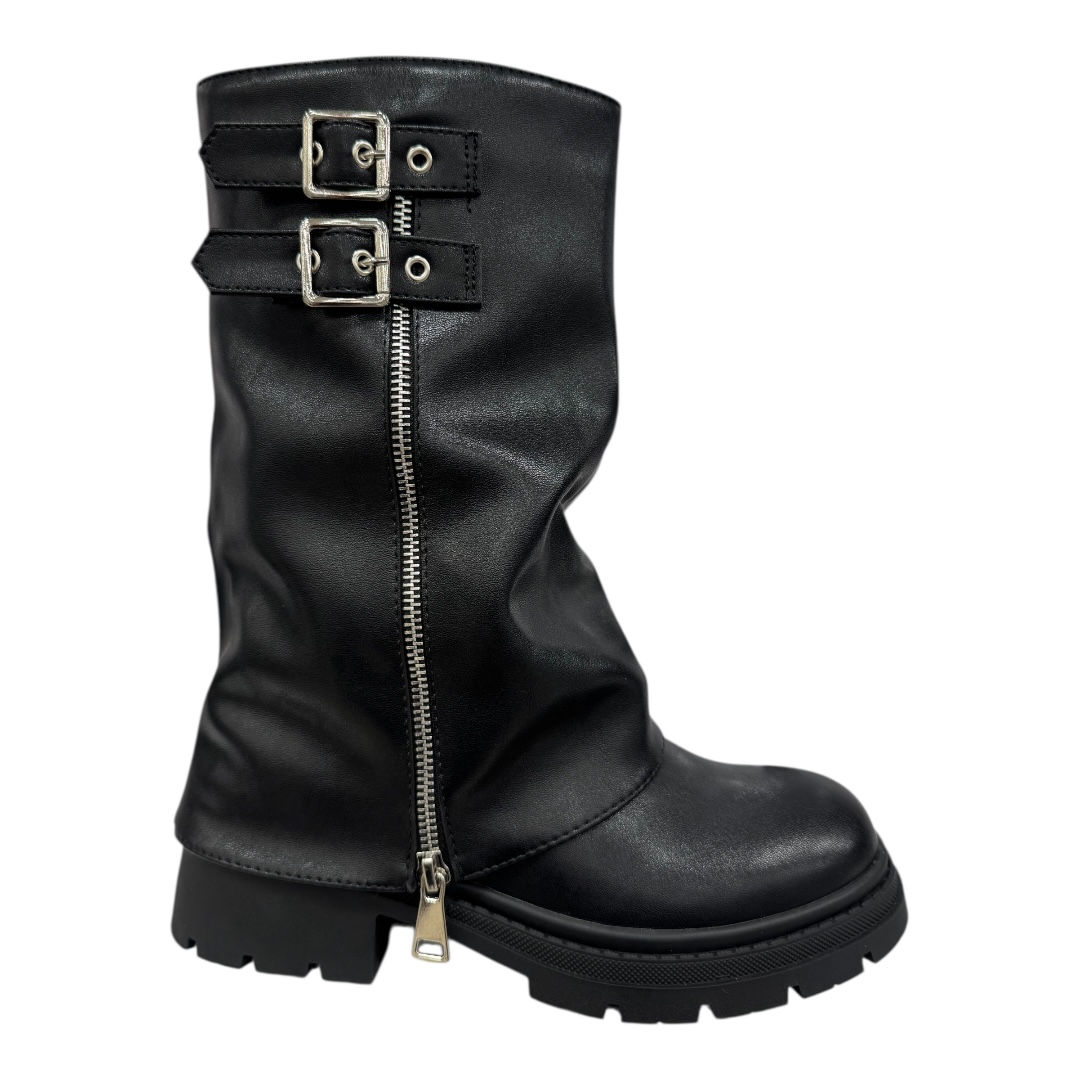 Bottes mi-mollet noir à talon 5 cm en cuir synthétique, élégantes et résistantes. Idéales pour sublimer vos tenues au quotidien. Commandez en ligne dès maintenant