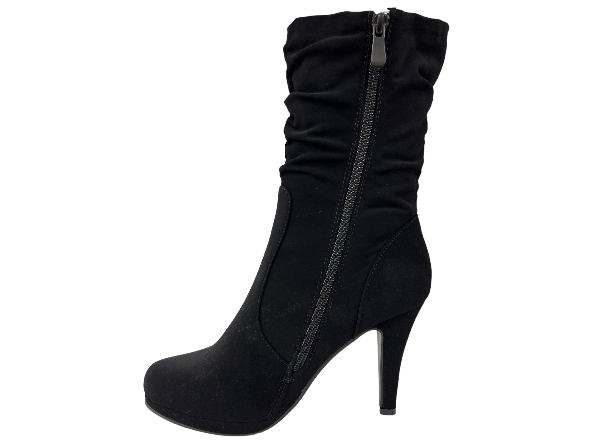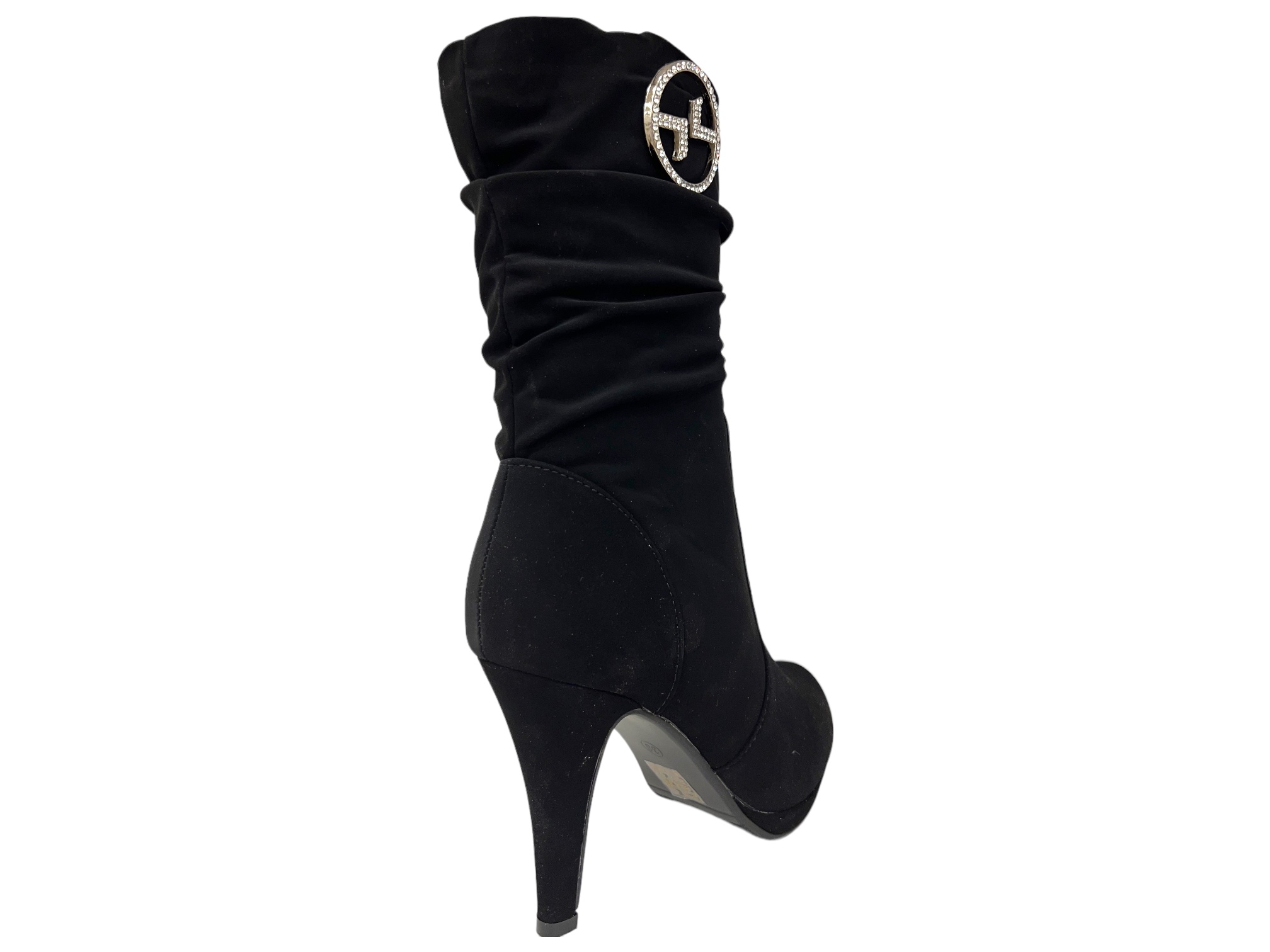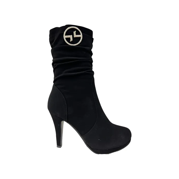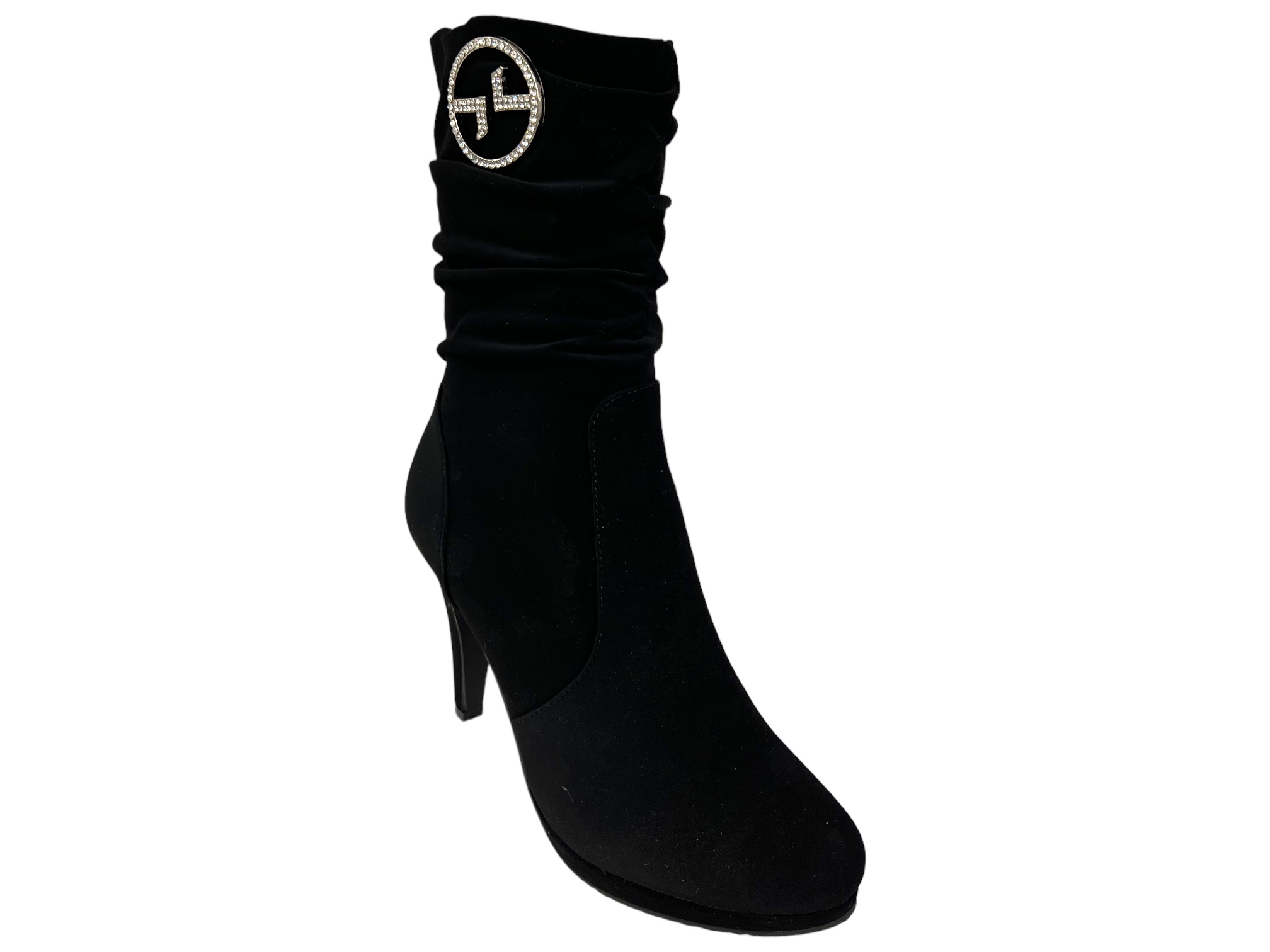 Bottines à talon 10 cm en cuir synthétique noir, silhouette élancée et sophistiquée. Parfaites pour vos soirées élégantes et occasions spéciales. Commandez en ligne dès maintenant