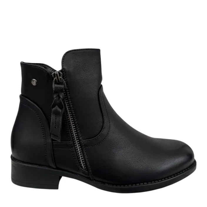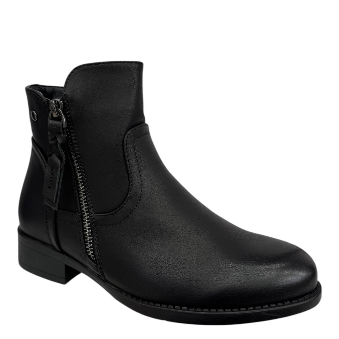 Bottines noires en cuir synthétique léger, résistantes et élégantes. Confort optimal au quotidien grâce à la semelle amortissante. Commandez en ligne dès maintenant