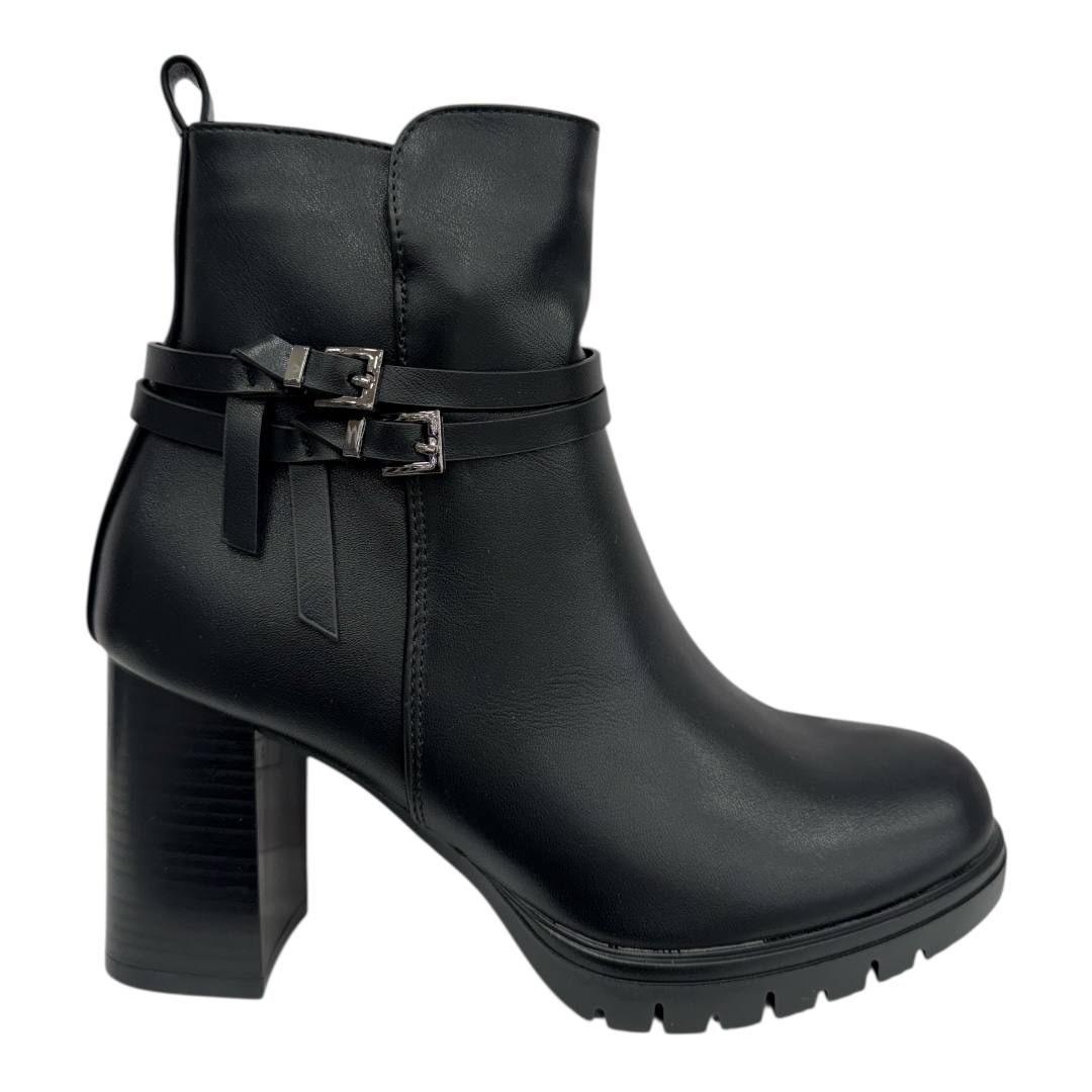 Bottines noires en cuir synthétique ultra résistant pour un look moderne et raffiné. Semelle antidérapante idéale au quotidien. Ajoutez-les à votre panier en ligne