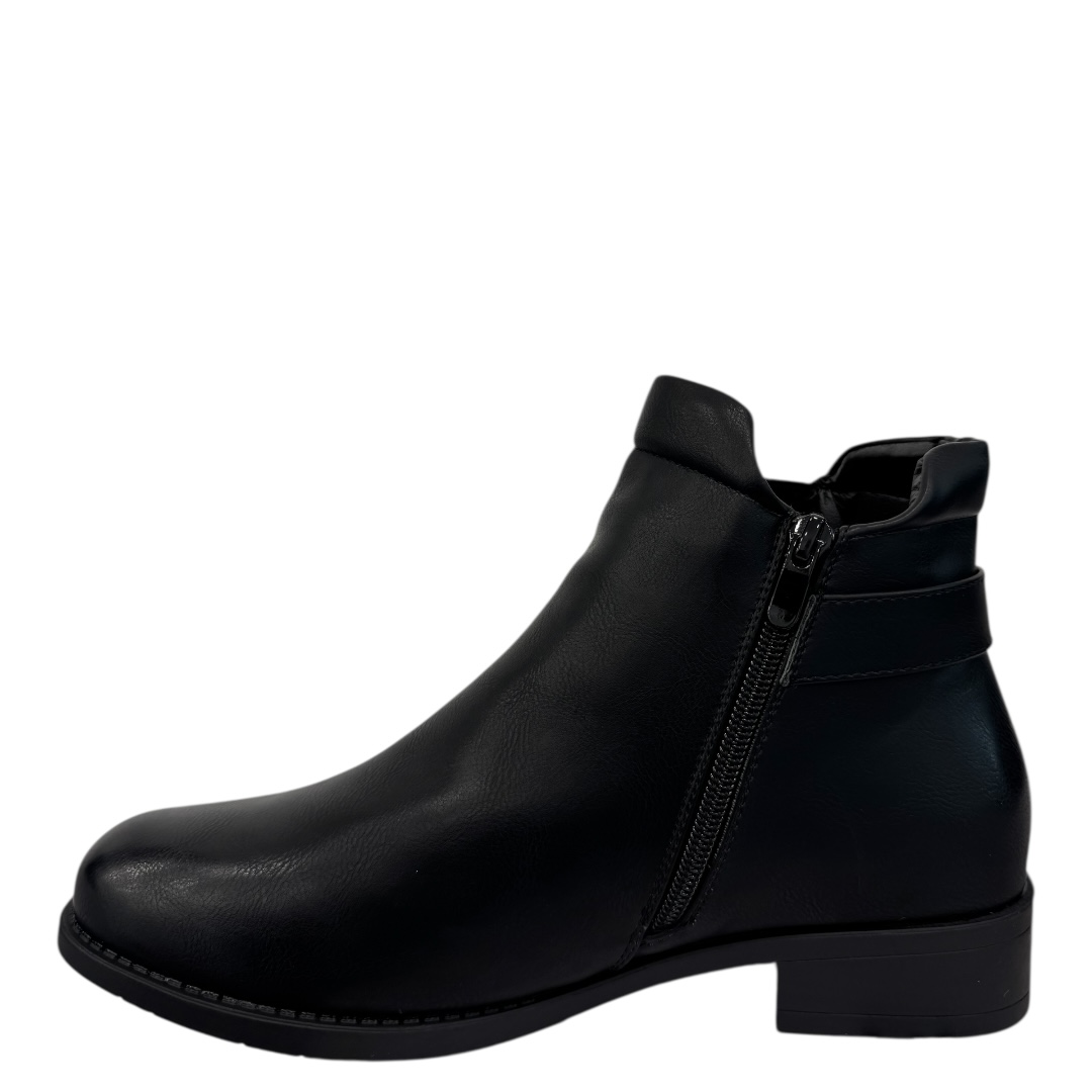 Bottines noires en cuir synthétique léger et résistant à l’eau. Confortables pour un usage quotidien élégant. Commandez en ligne dès maintenant