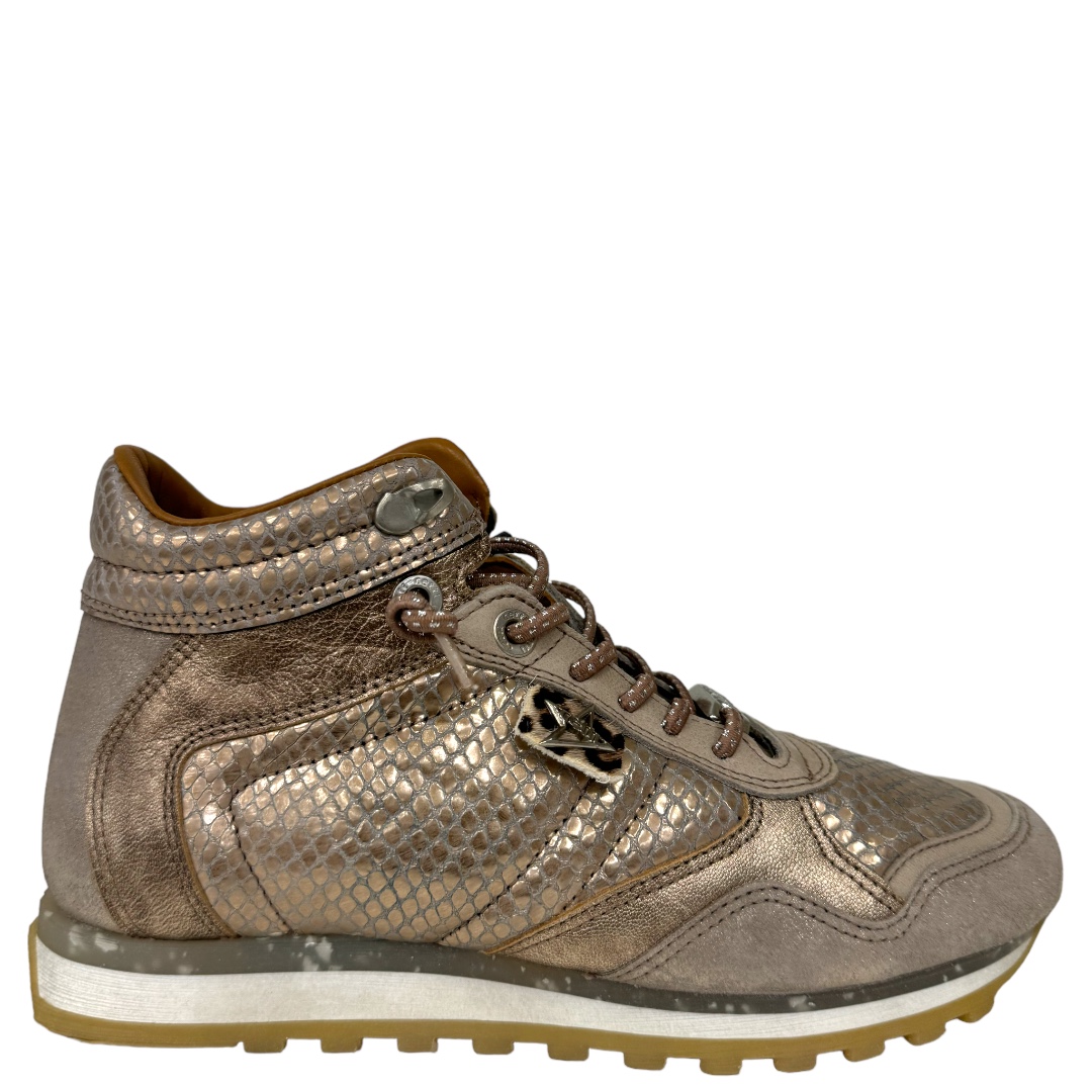 Sneakers montantes Cetti en cuir rose métallisé, féminines et confortables. Semelle antidérapante idéale pour vos journées actives. Commandez en ligne dès maintenant