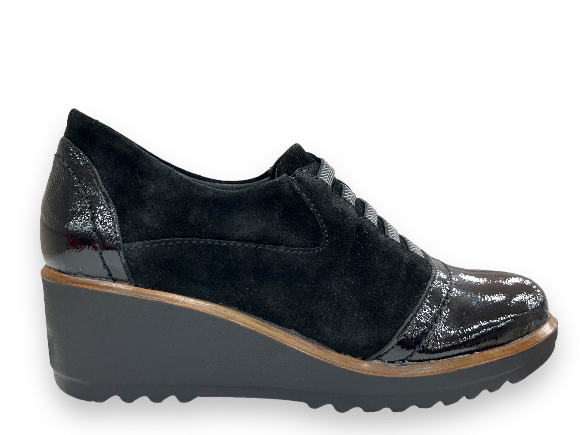 Leur silhouette compensée offre une allure élancée tout en garantissant un port confortable, idéal pour les femmes à la recherche d’un équilibre entre esthétique et praticité. La teinte noire profonde s’accorde facilement avec toutes vos tenues, du jean casual à la robe plus sophistiquée, tandis que la texture douce du daim synthétique apporte une touche de chic discret.