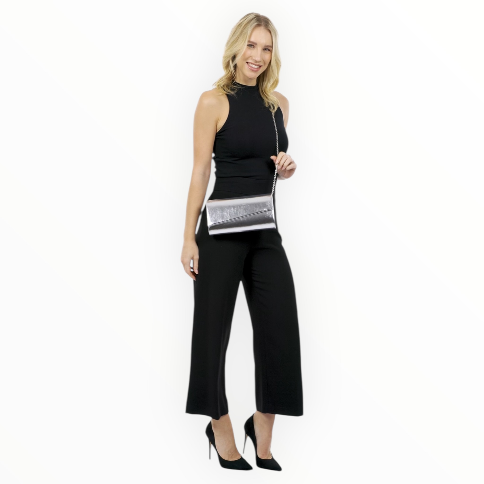 Kleine Clutch in elegantem Silber mit praktischem Magnetverschluss. Ideal für besondere Anlässe oder als täglicher Begleiter. Jetzt online bestellen