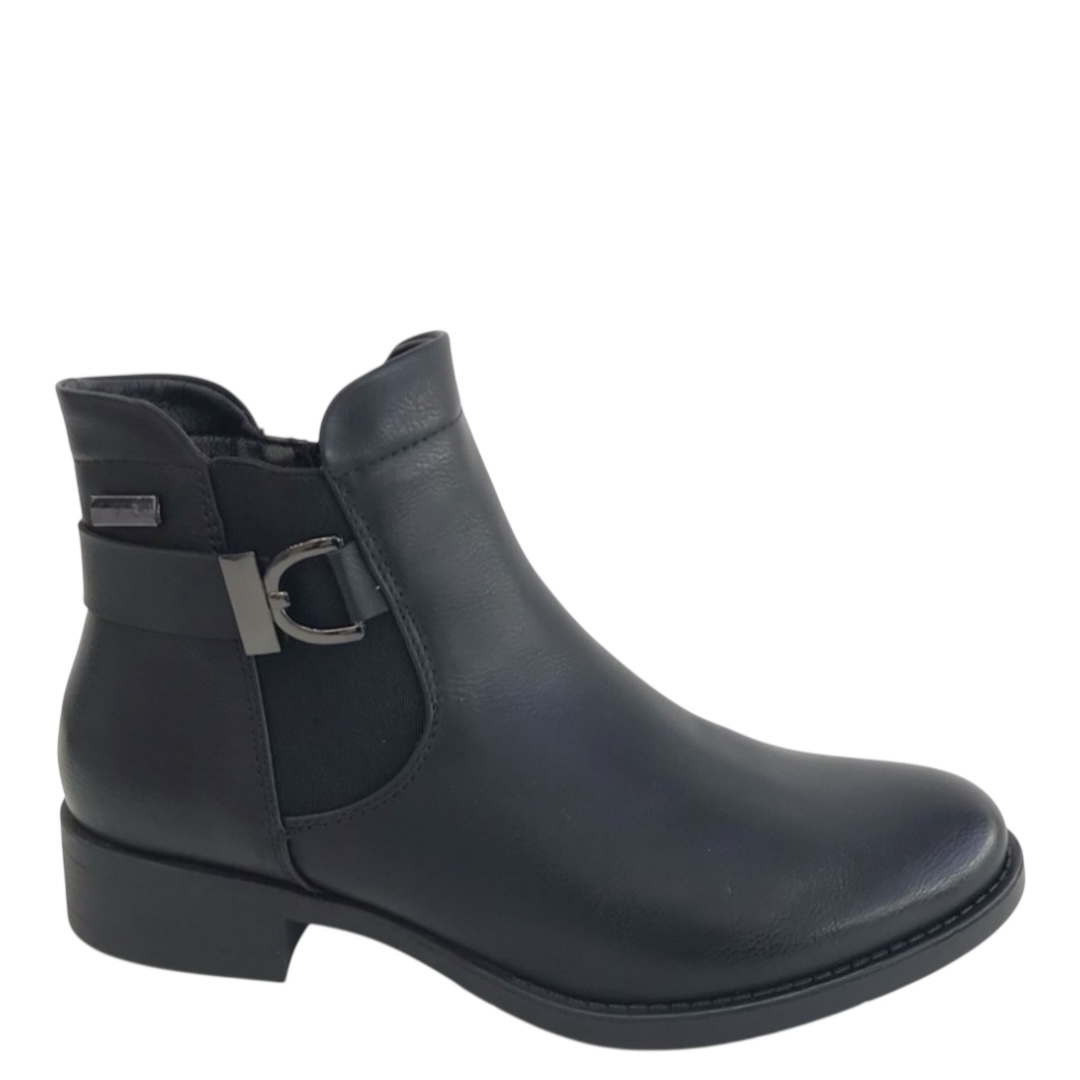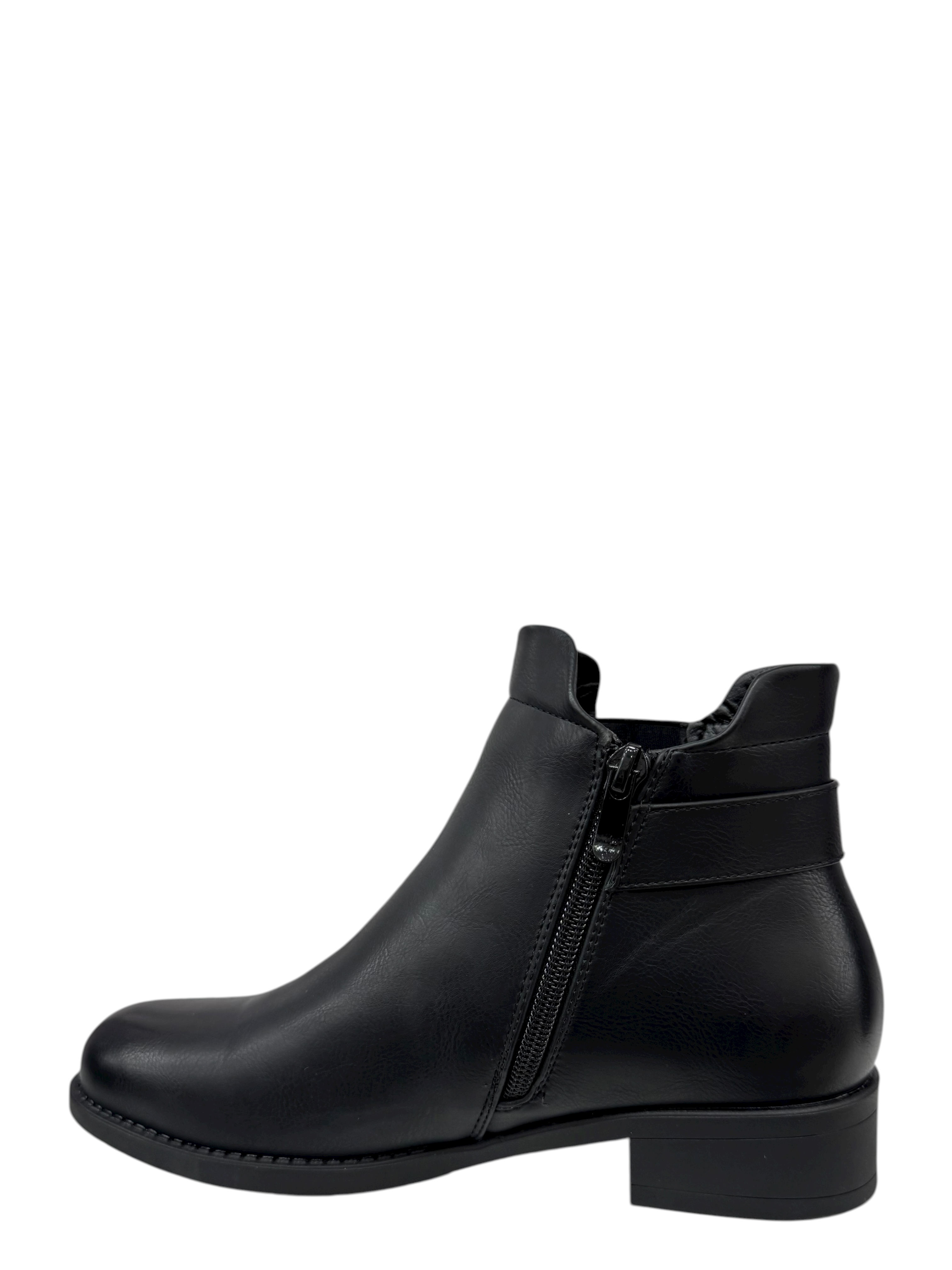 Elegant black ankle boots with a refined low heel for everyday style. Versatile comfort for any occasion. Order online now