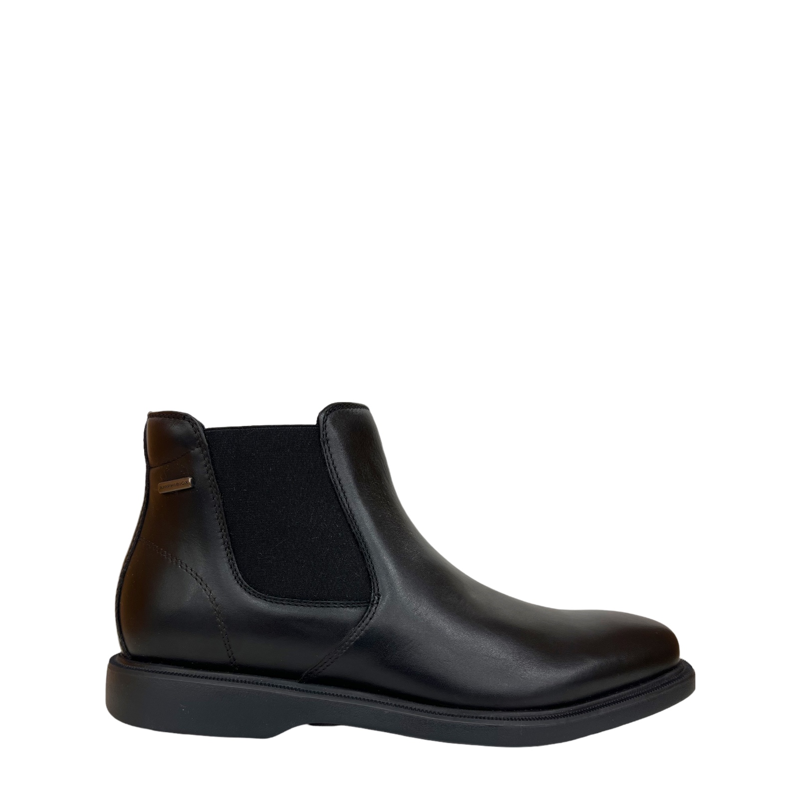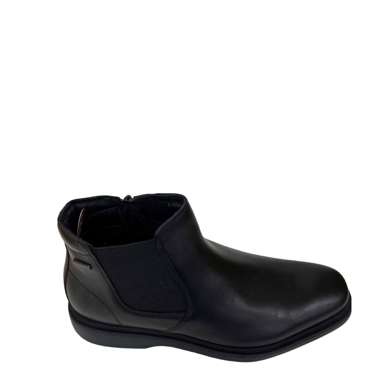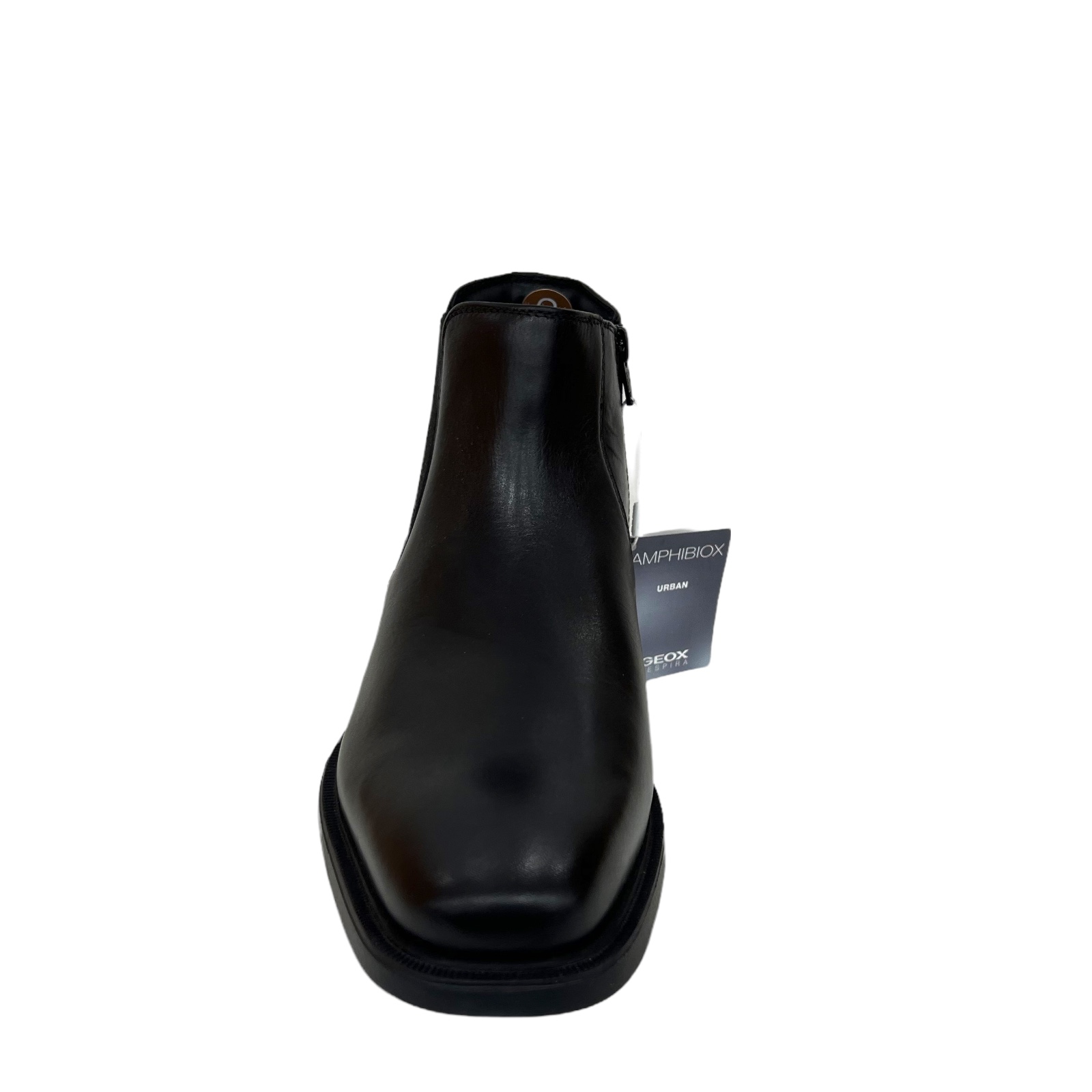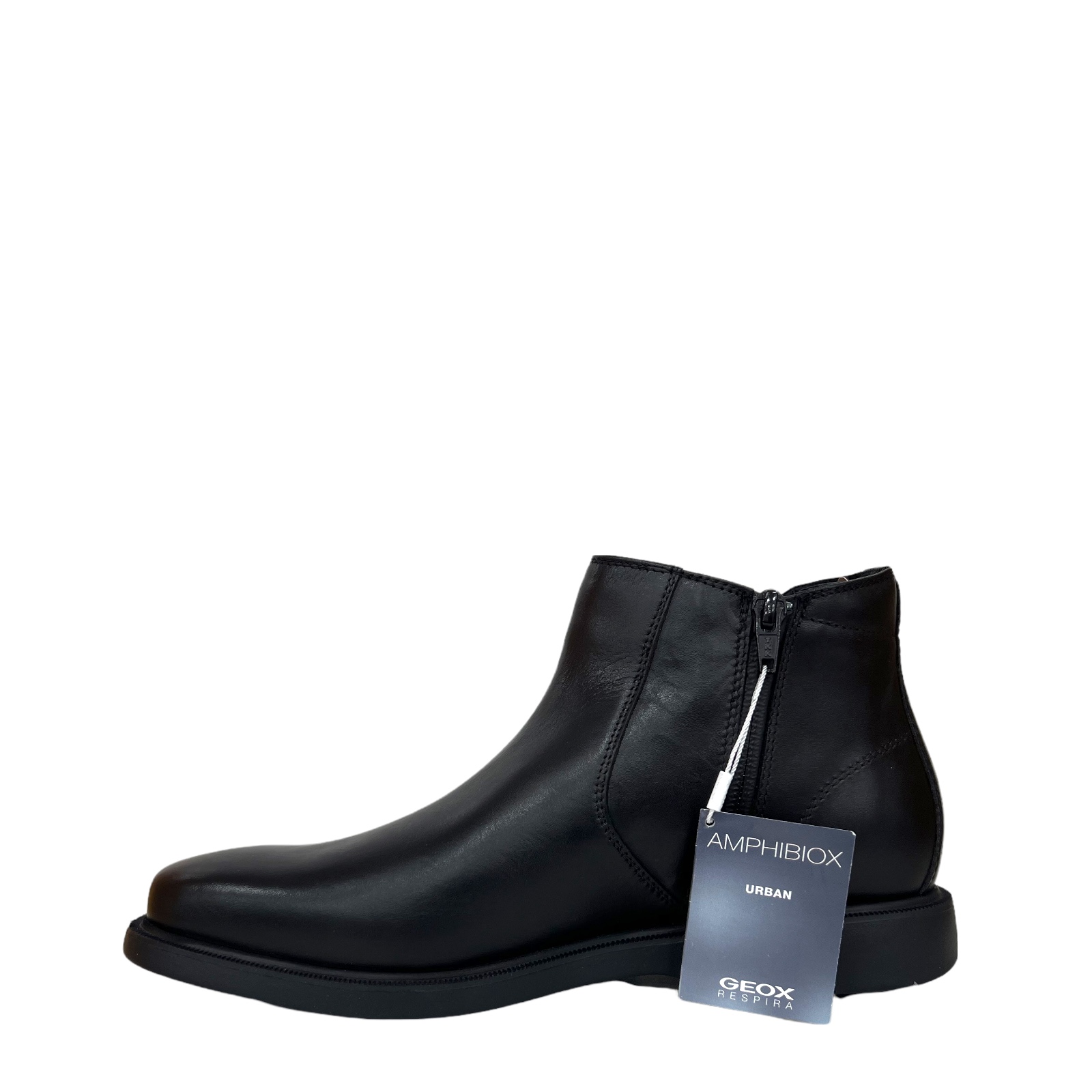 Men’s black leather boots with Geox Amphibiox waterproof technology. All-day comfort and slip-resistant grip in any weather. Order online now