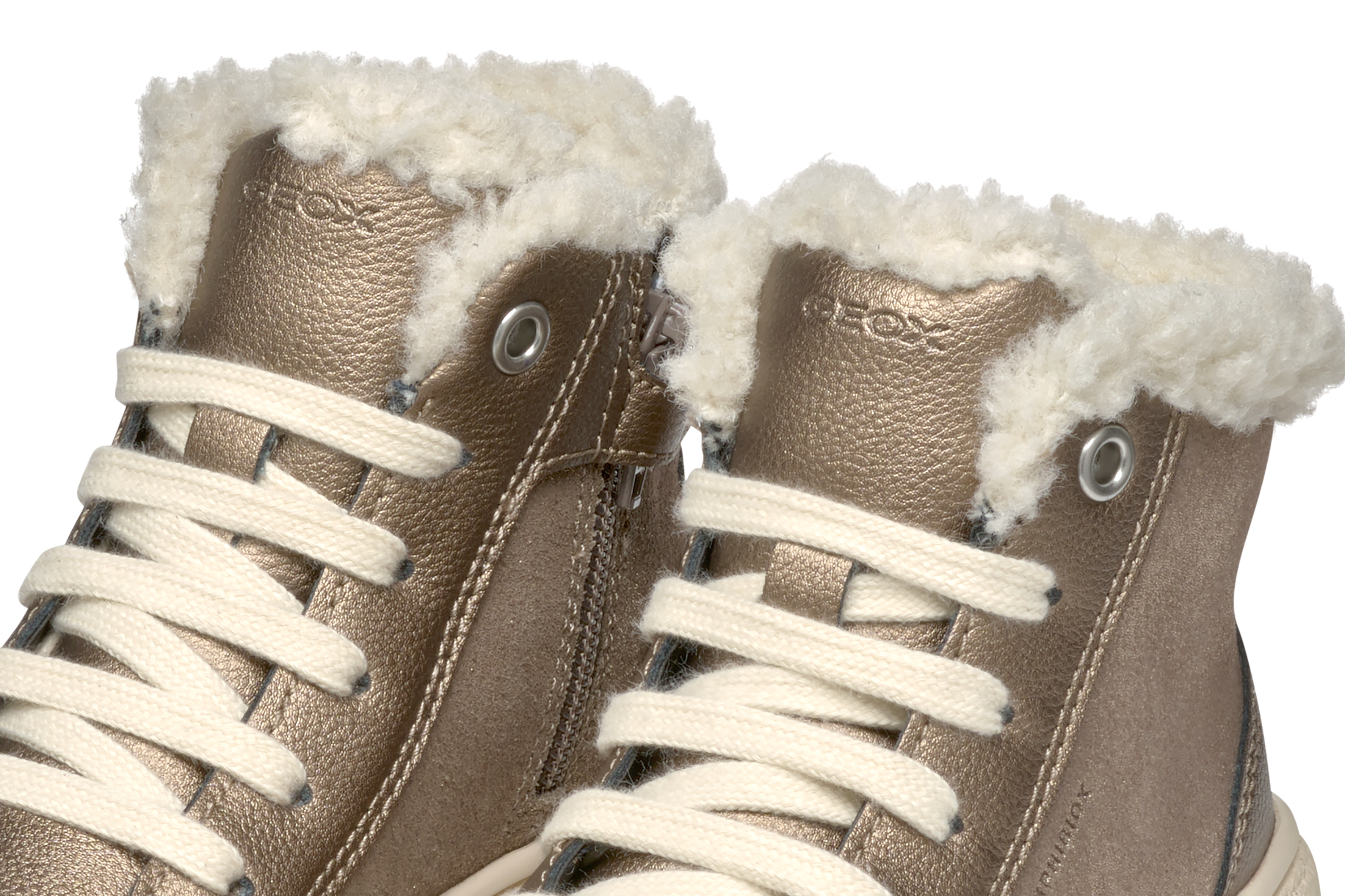 Designed with active children in mind, these sneakers combine the trusted Geox waterproof technology with a premium natural leather upper. This ensures little feet stay perfectly dry, while the signature breathability keeps them fresh all day. The natural wool removable insole provides exceptional warmth and moisture absorption, making these sneakers an excellent choice for colder months. Whether it’s a rainy walk to school or a chilly afternoon at the park, your child’s feet will stay cozy and supported.