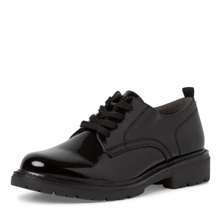 Step into everyday sophistication with the Jana Comfort wide-fit flat derbie in timeless black. Perfect for busy days at work or relaxed city strolls, this shoe blends modern elegance with exceptional comfort, ensuring you look and feel your best from morning to night.