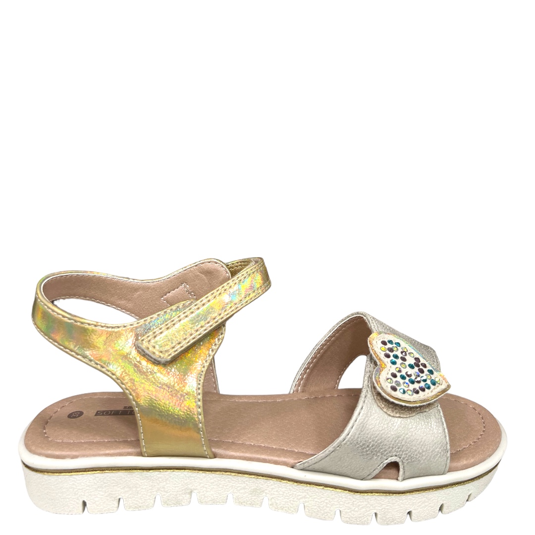 Girls' gold sandals in premium PU-synthetic for durability and shine. Non-slip rubber sole ensures confident play. Order online now