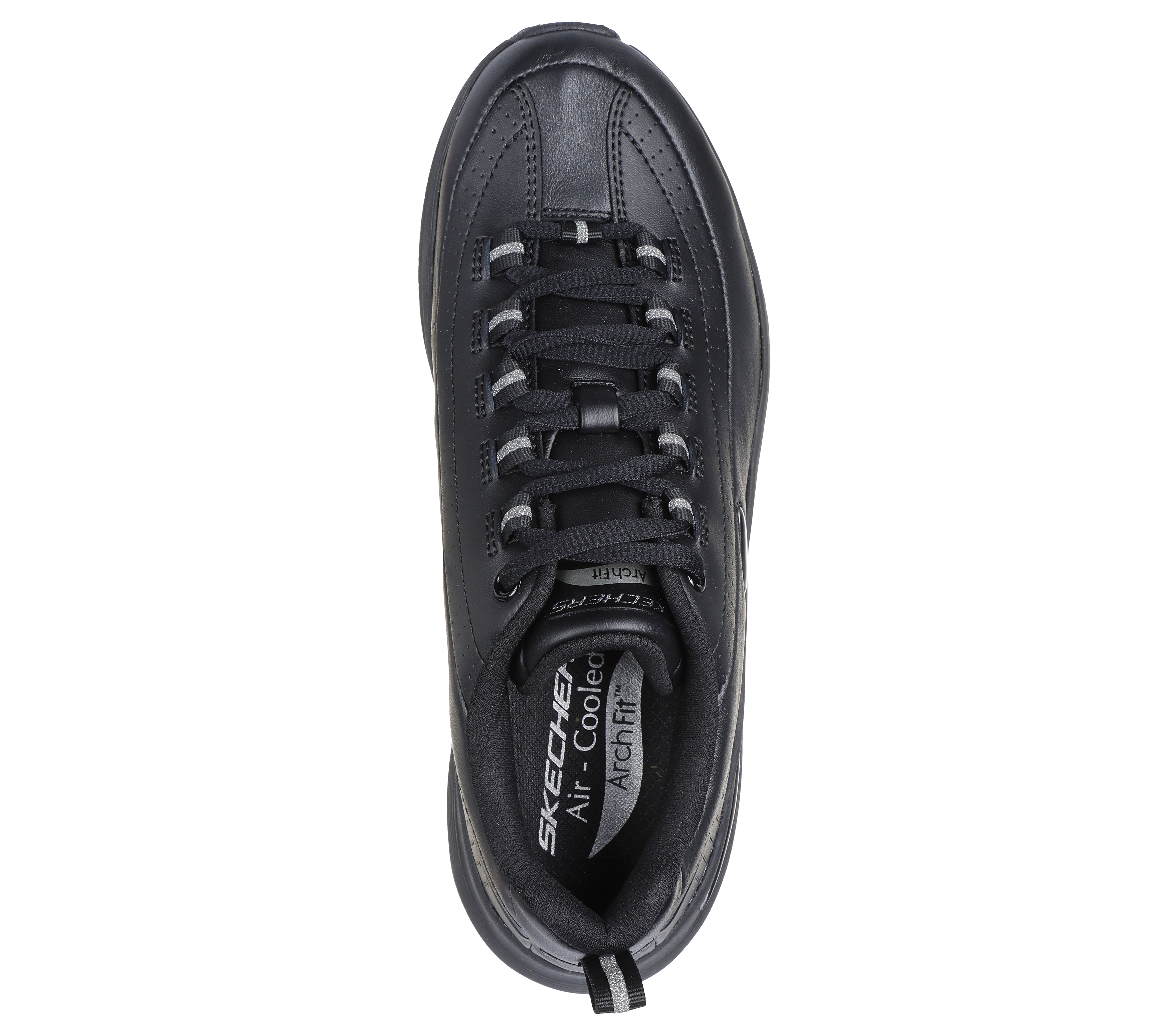 What sets these sneakers apart is the Skechers Arch Fit sole, developed with podiatrists for optimal arch support and certified for its effectiveness in improving foot alignment and reducing fatigue. This advanced technology transforms your walking experience, providing relief and comfort even through long hours on your feet. Pair these versatile black sneakers effortlessly with your favorite jeans, tailored trousers, or even a casual dress to elevate any look. Enjoy reliable support, premium materials, and sleek style—making this pair a smart investment for your wardrobe and wellbeing.