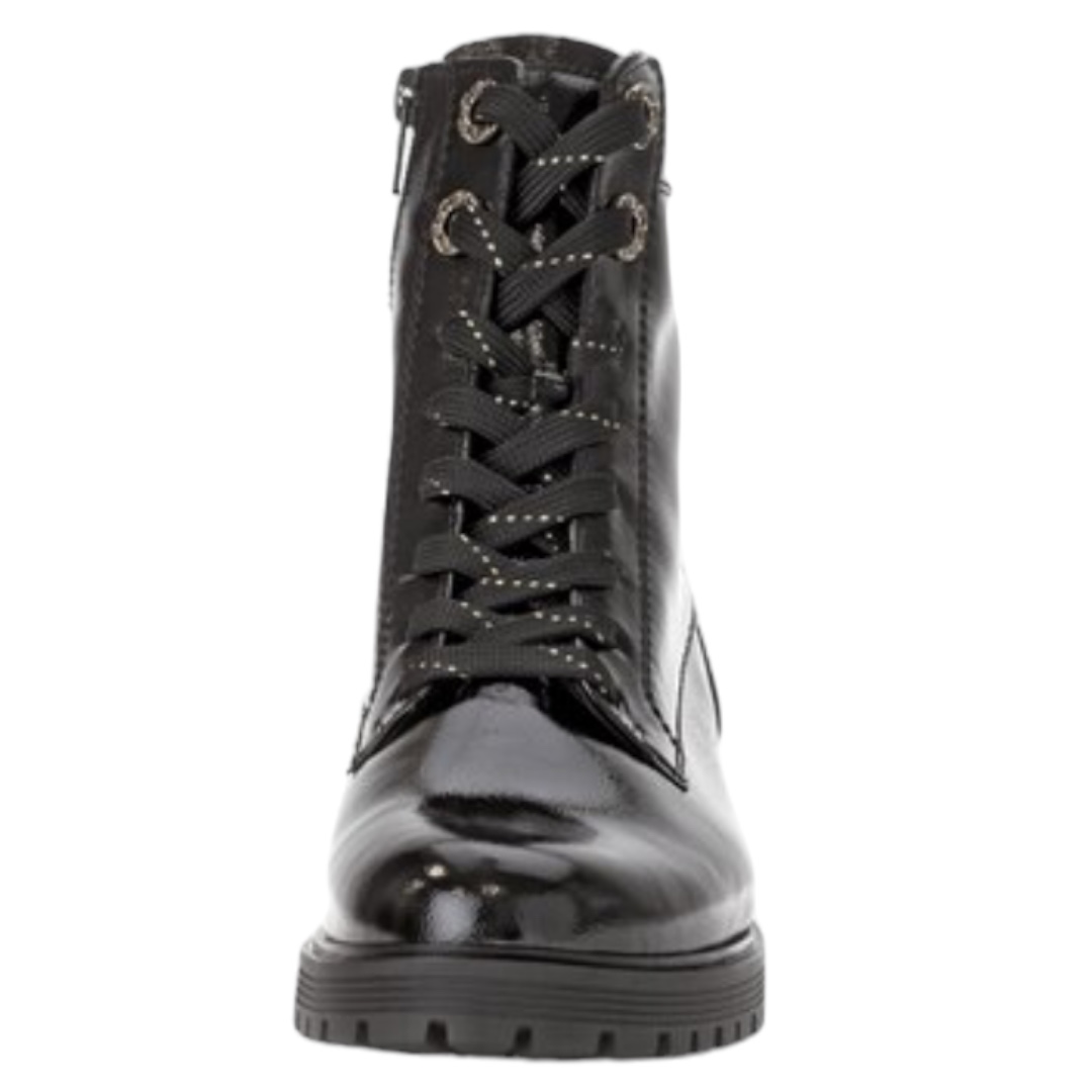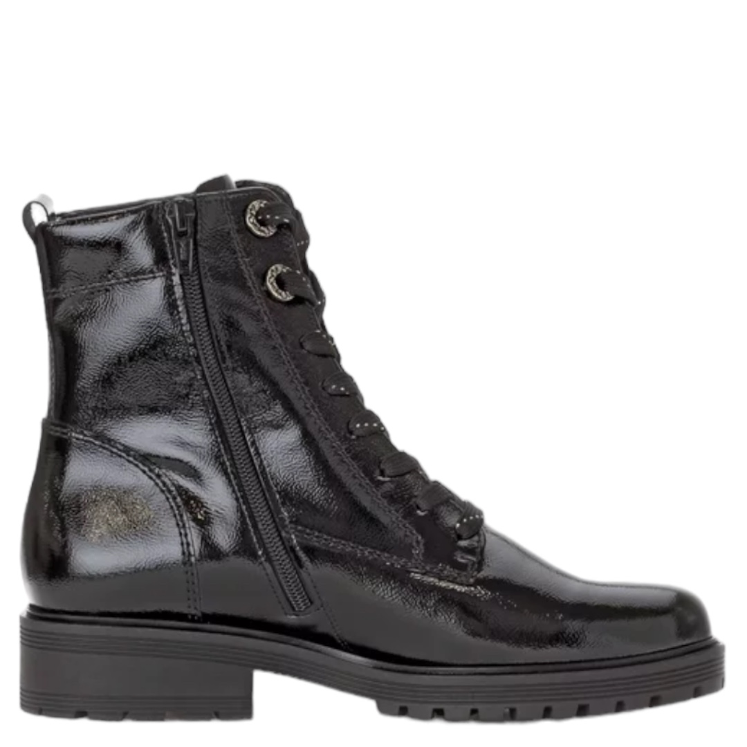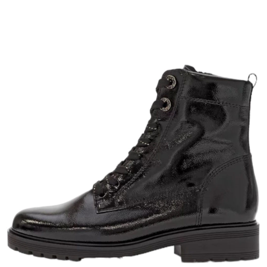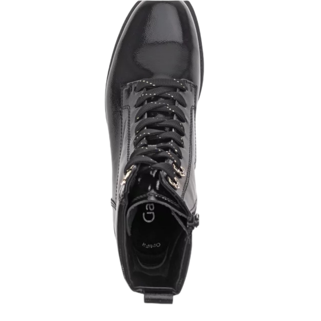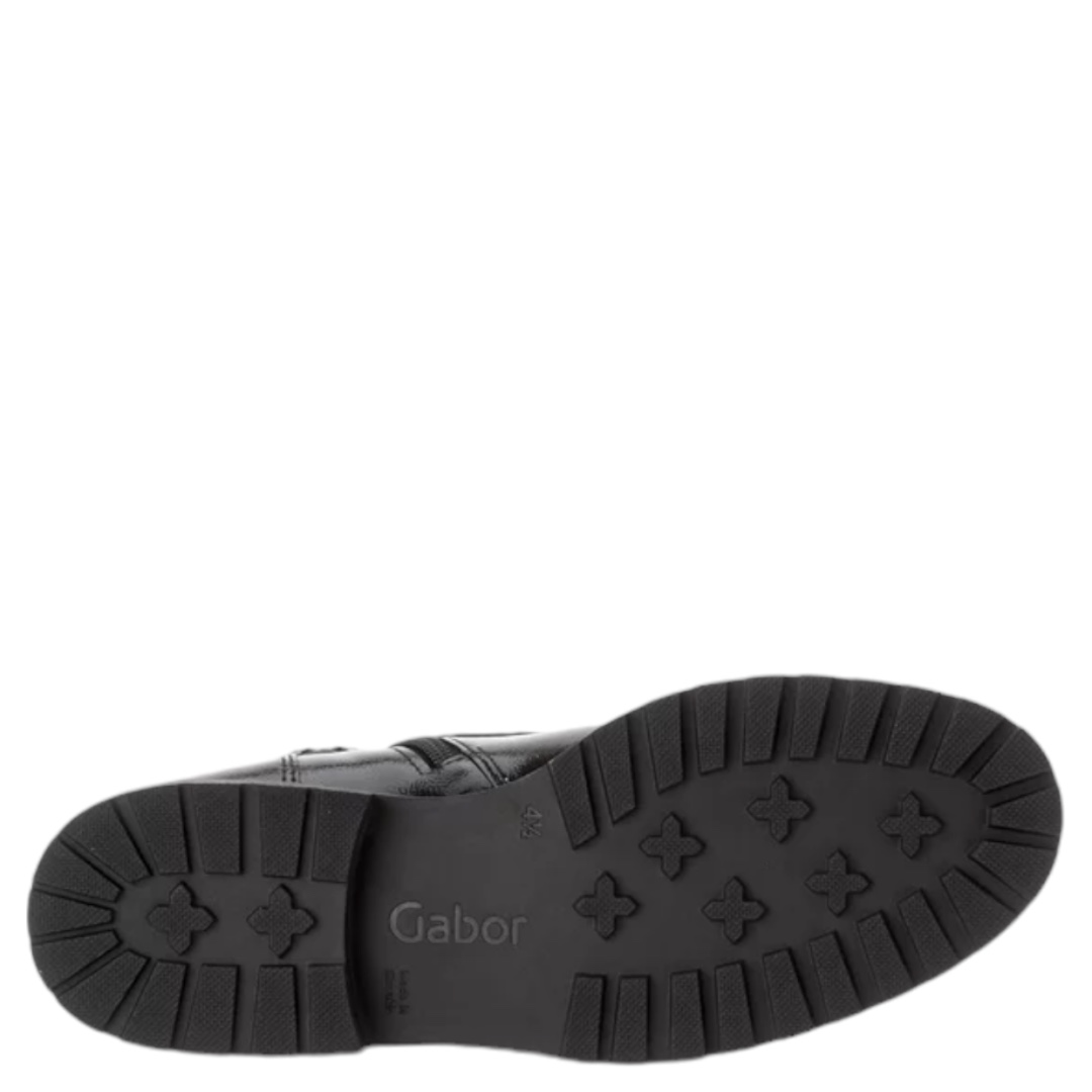 Bottines en cuir noir vernis Gabor Comfort+ à talon 4,5 cm, élégantes et ultra confortables. Largeur H idéale pour pieds sensibles. Commandez en ligne dès maintenant