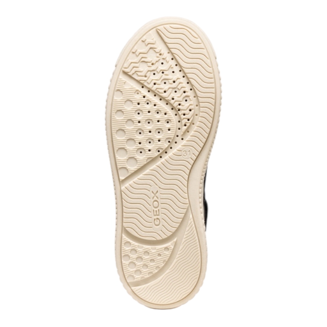 La semelle première en cuir naturel amovible procure un confort premium et une hygiène irréprochable, tandis que la semelle extérieure en caoutchouc Geox assure une excellente adhérence et une durabilité à toute épreuve. Disponibles en noir ou noir-platinum, ces sneakers s’adaptent à toutes les envies et s’intègrent parfaitement à la garde-robe des enfants. Idéales pour l’école, le sport ou les loisirs, elles accompagnent chaque pas avec style et sérénité, tout en offrant la promesse d’un chaussant adapté – n’oubliez pas de choisir une pointure en moins pour un ajustement parfait.