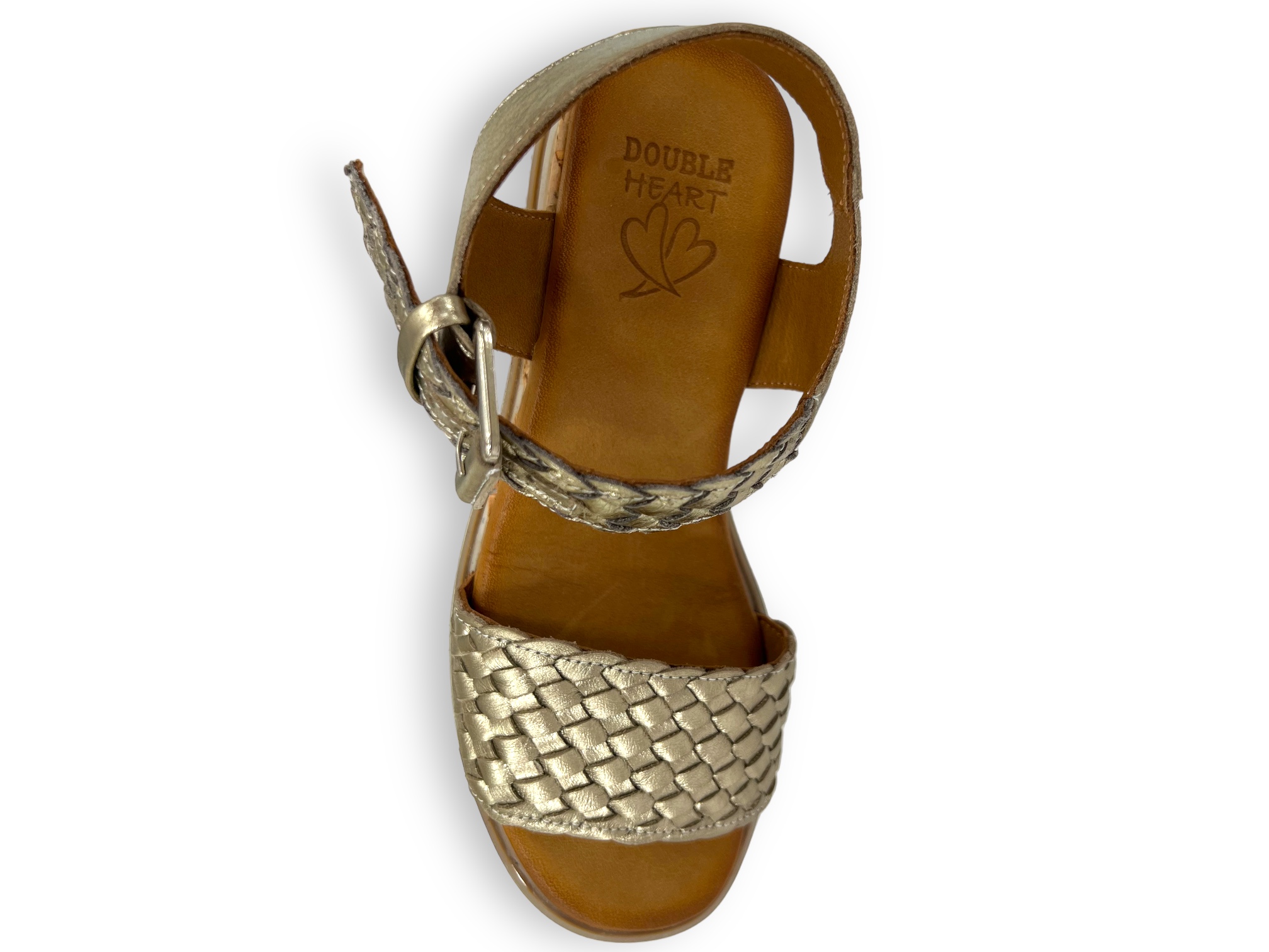 Sandalen van Double Heart in echt leer met elegante metallic look. Comfortabele hak en antislip zool voor elke dag. Bestel nu online