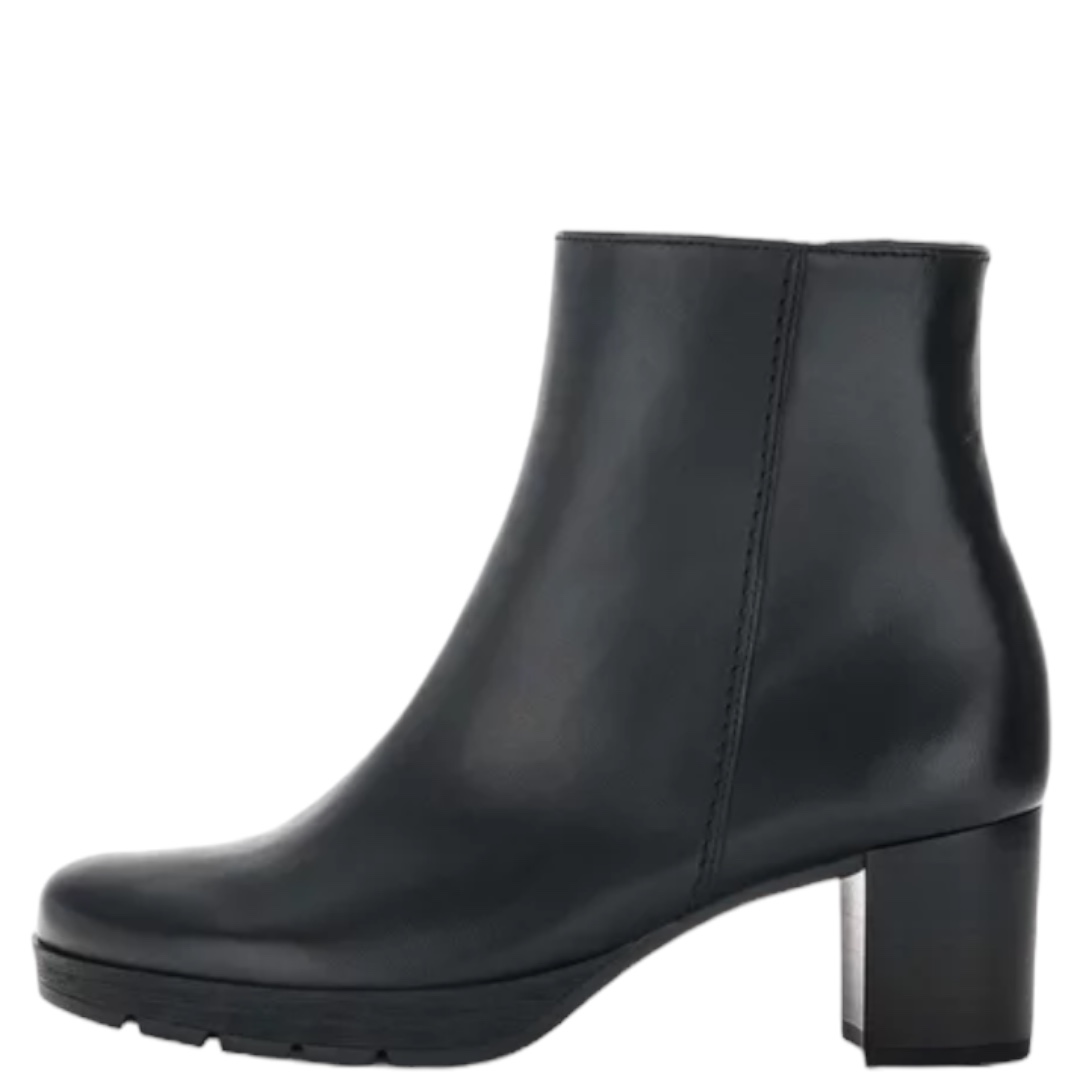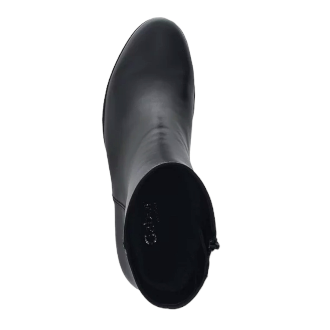 Zwarte enkellaarsjes van Gabor in soepel leer met comfortabele 6 cm hak. Perfect voor stijl en comfort de hele dag. Bestel direct online
