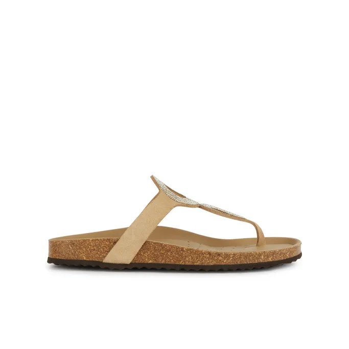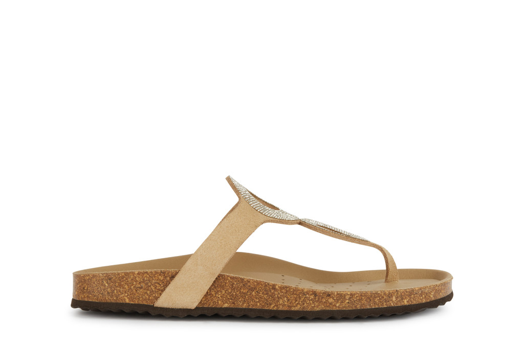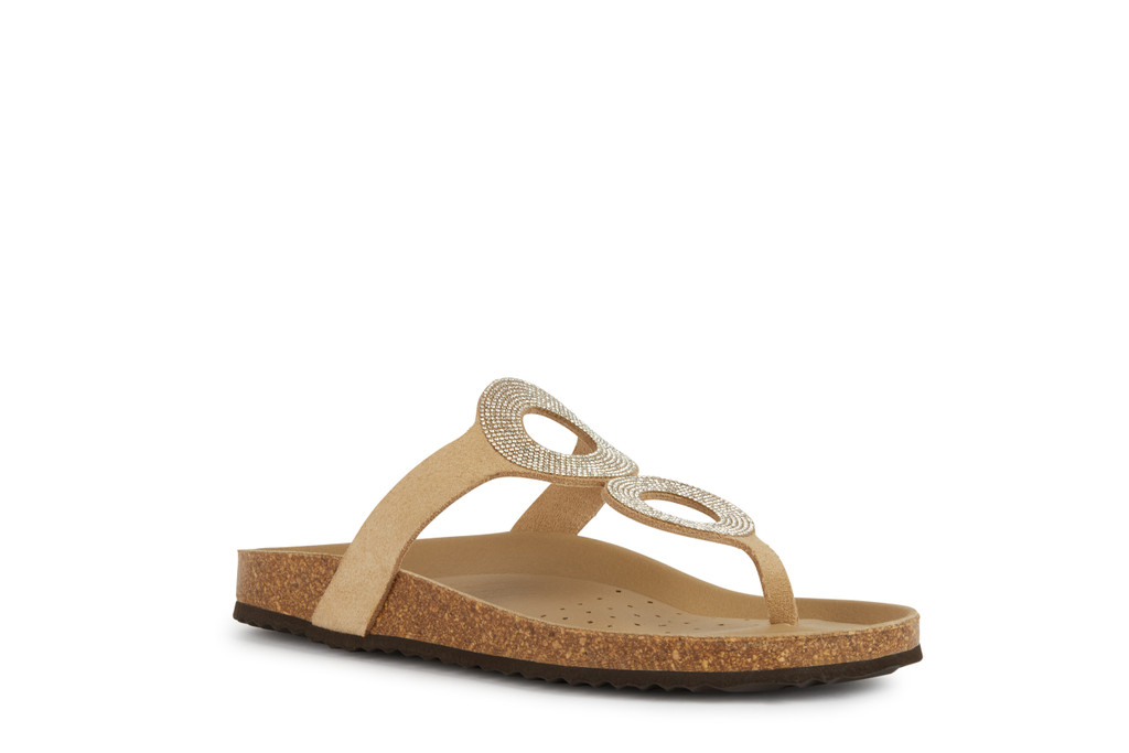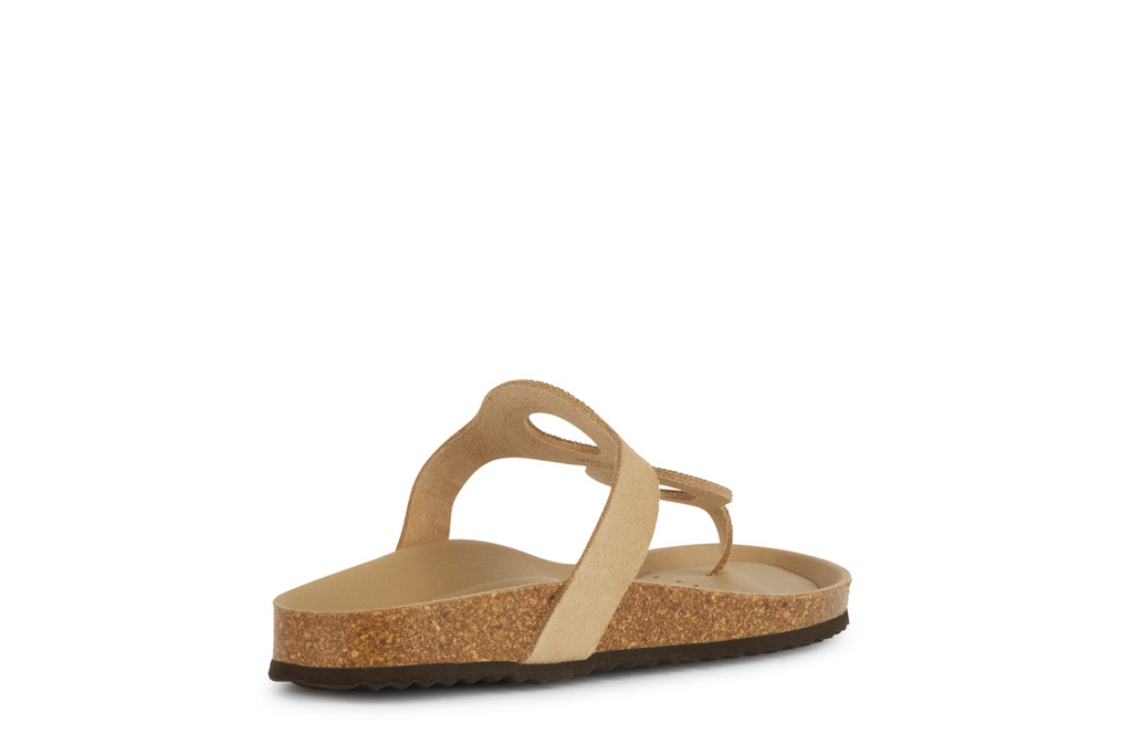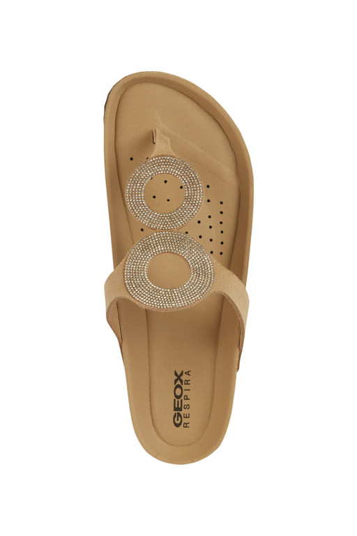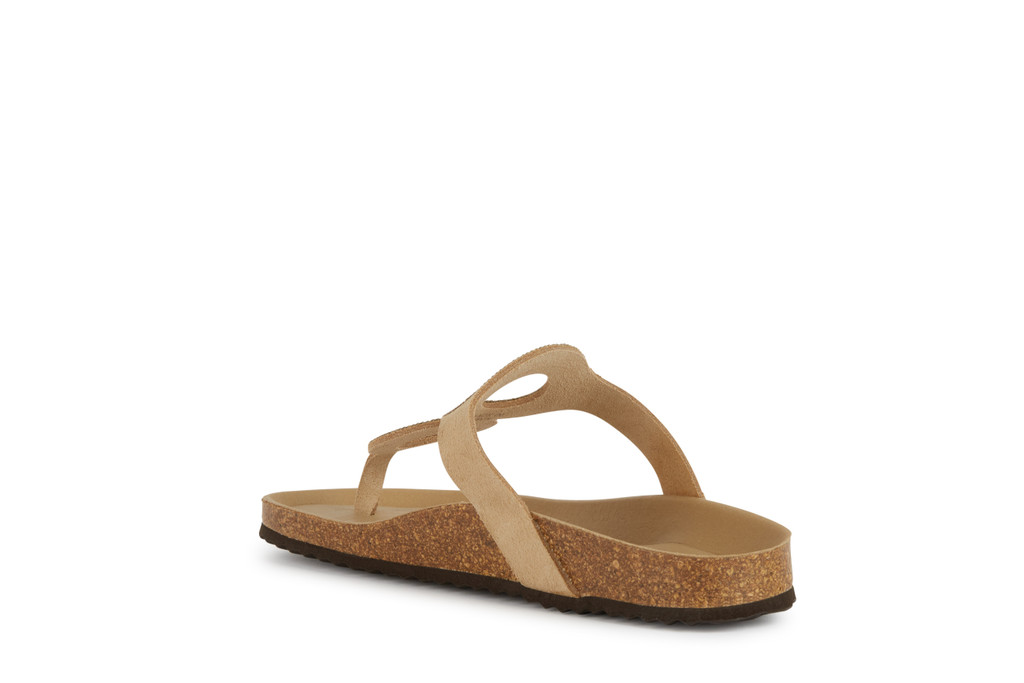 Beige leren teenslippers met Geox Respira-technologie voor ademend comfort. Ideaal voor stijlvol dagelijks gebruik. Bestel eenvoudig online