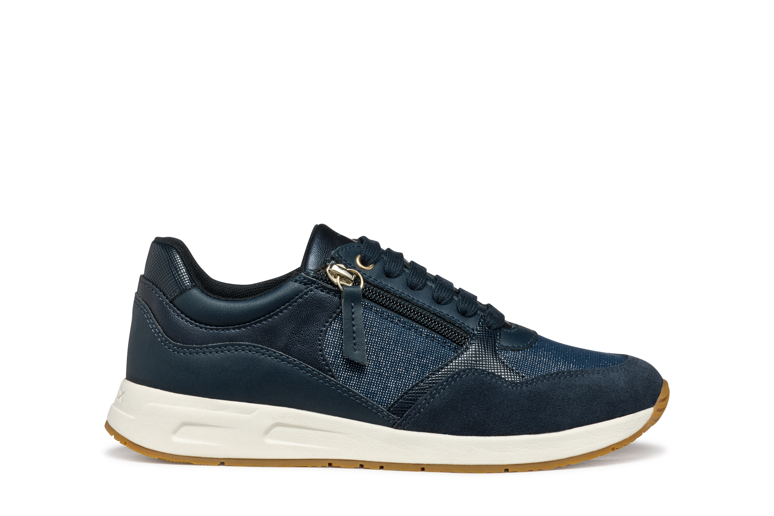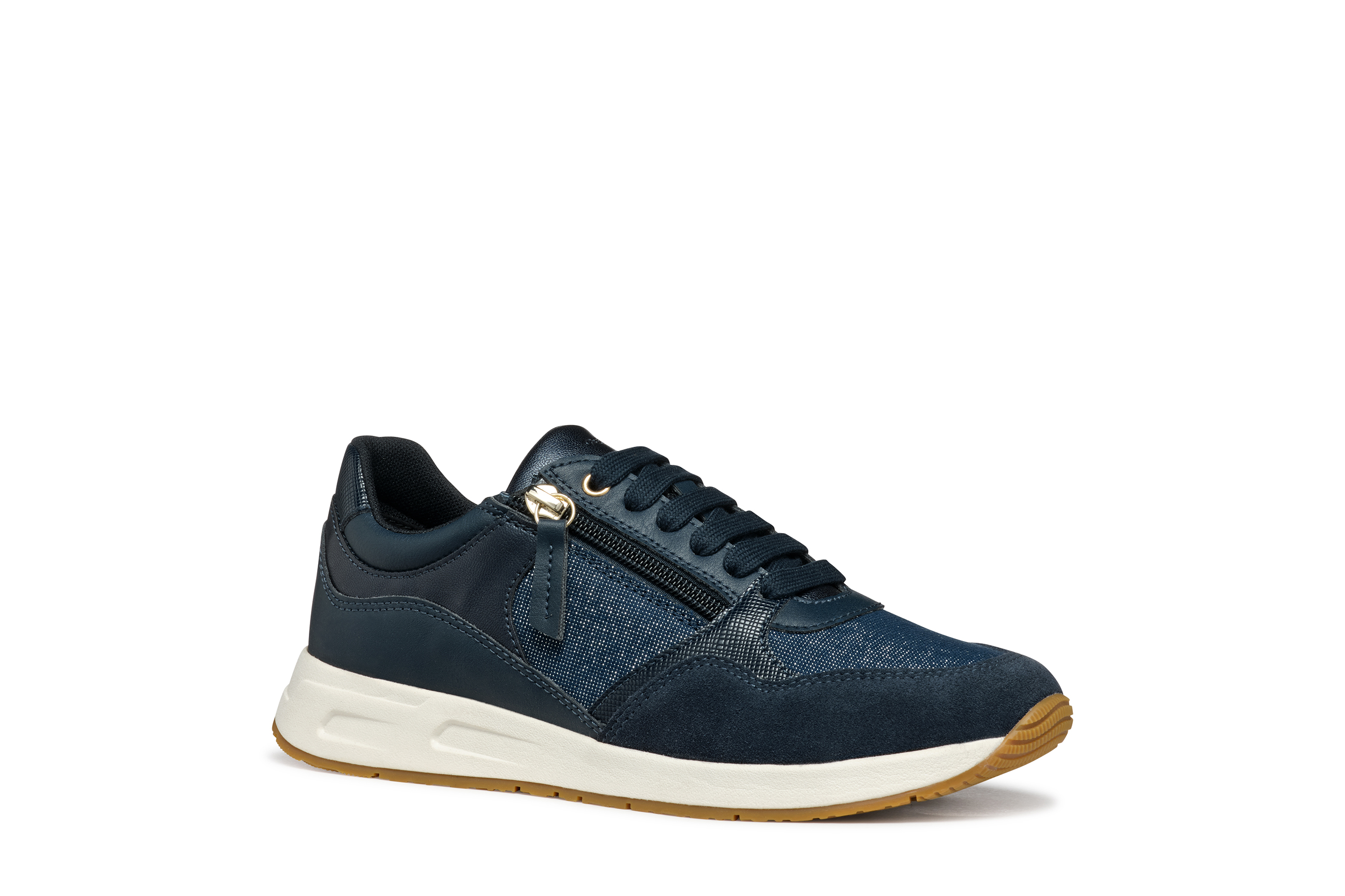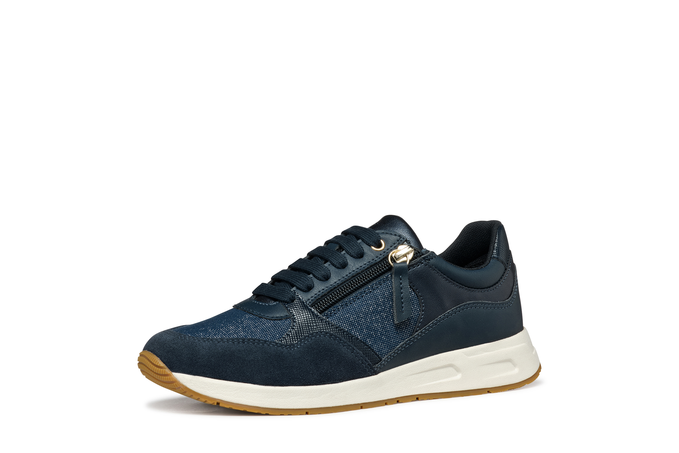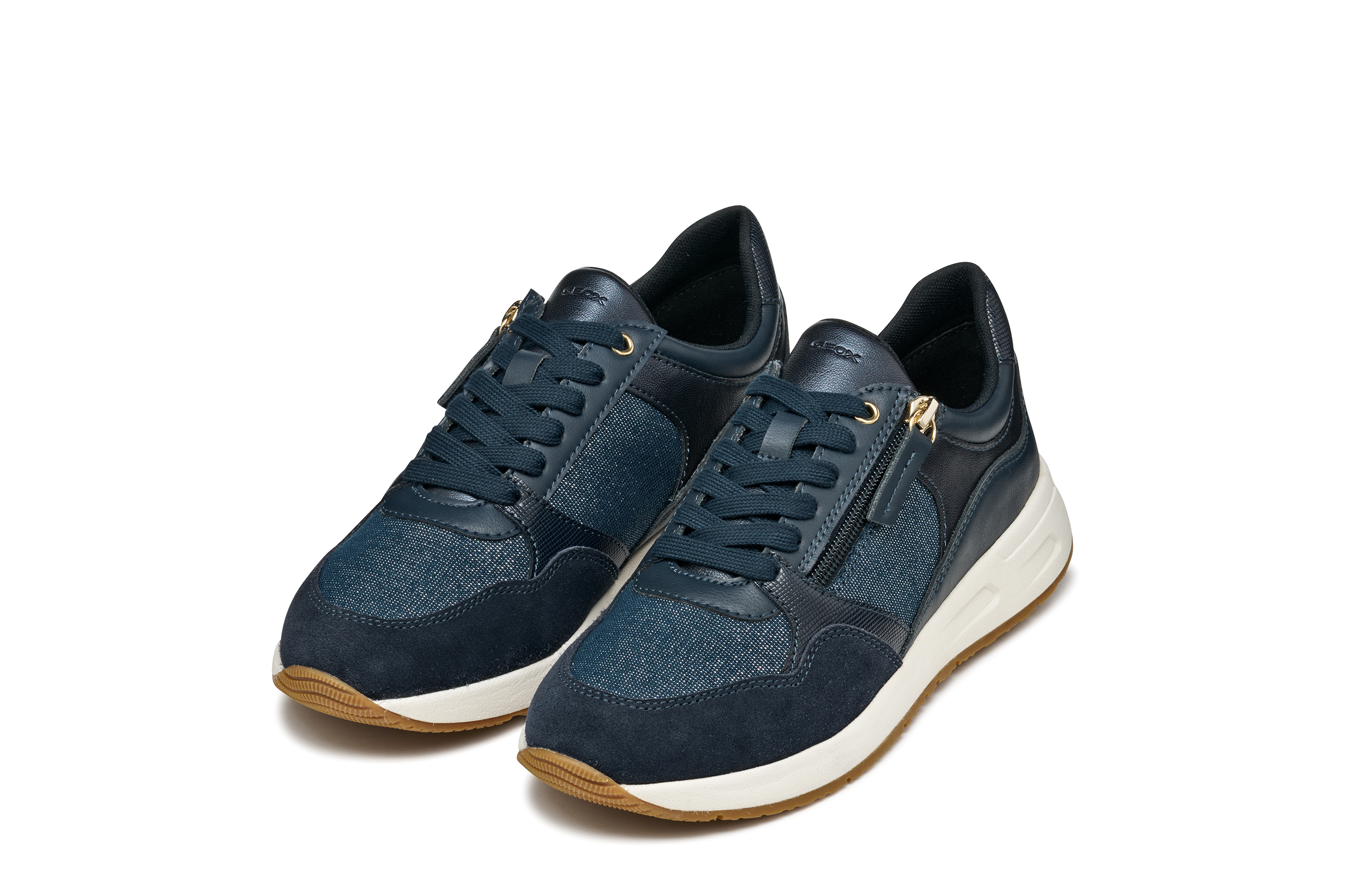 Blauwe Geox sneakers met 4 cm gecompenseerde hak en Respira-technologie voor ademend comfort. Perfect voor stijlvolle, actieve dagen. Bestel nu eenvoudig online