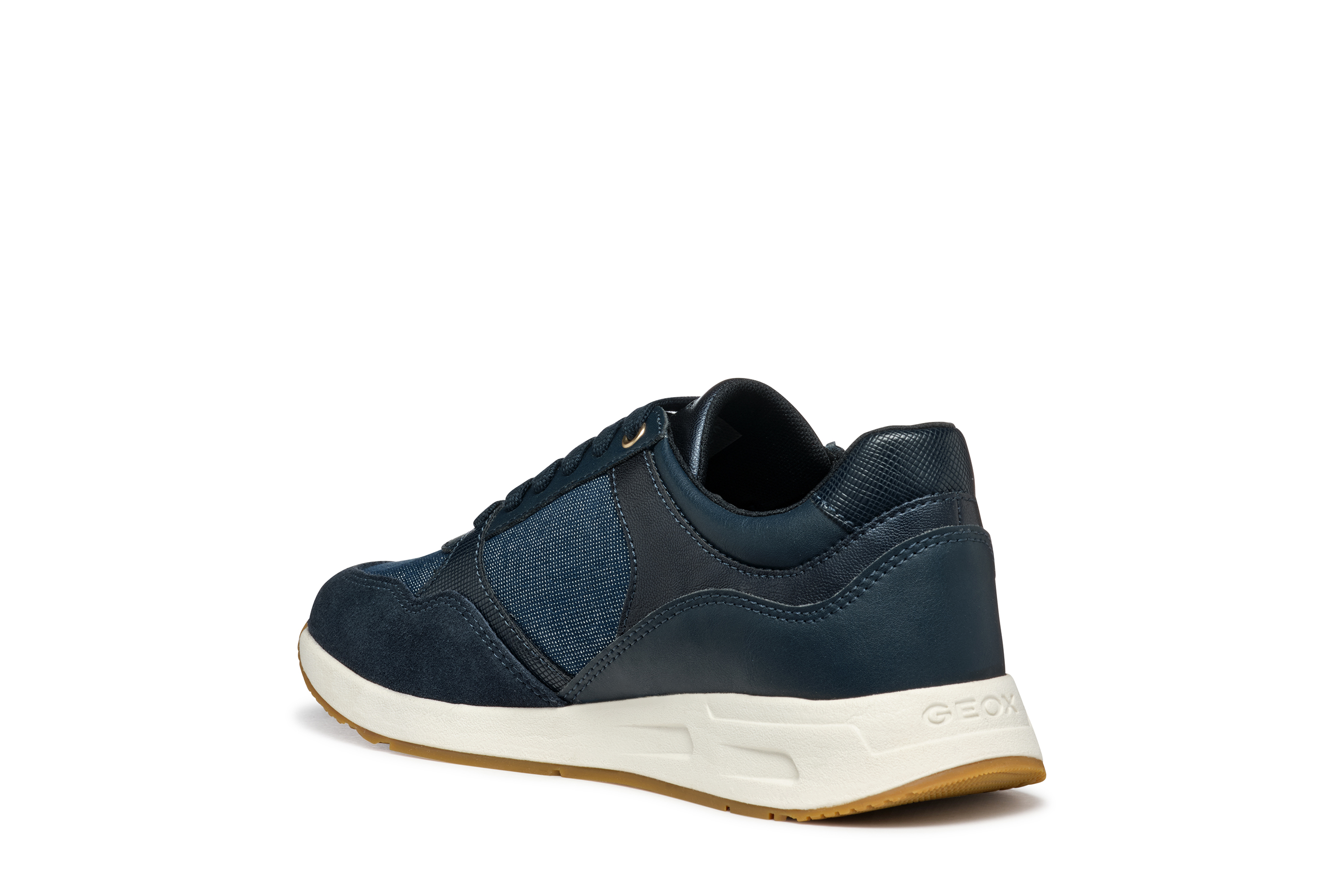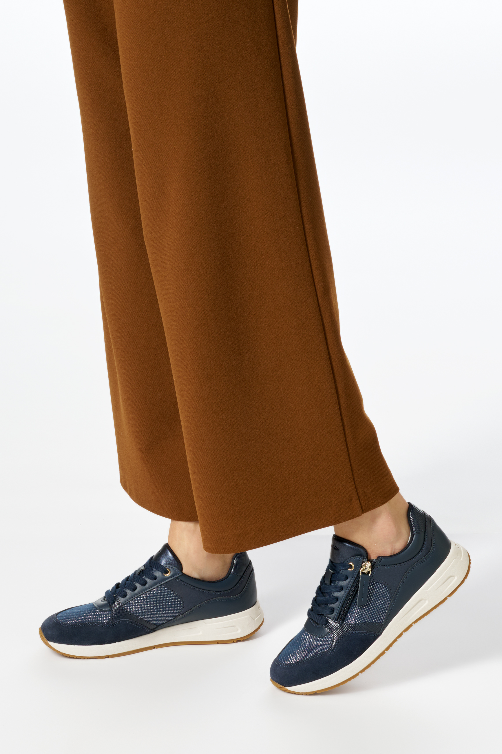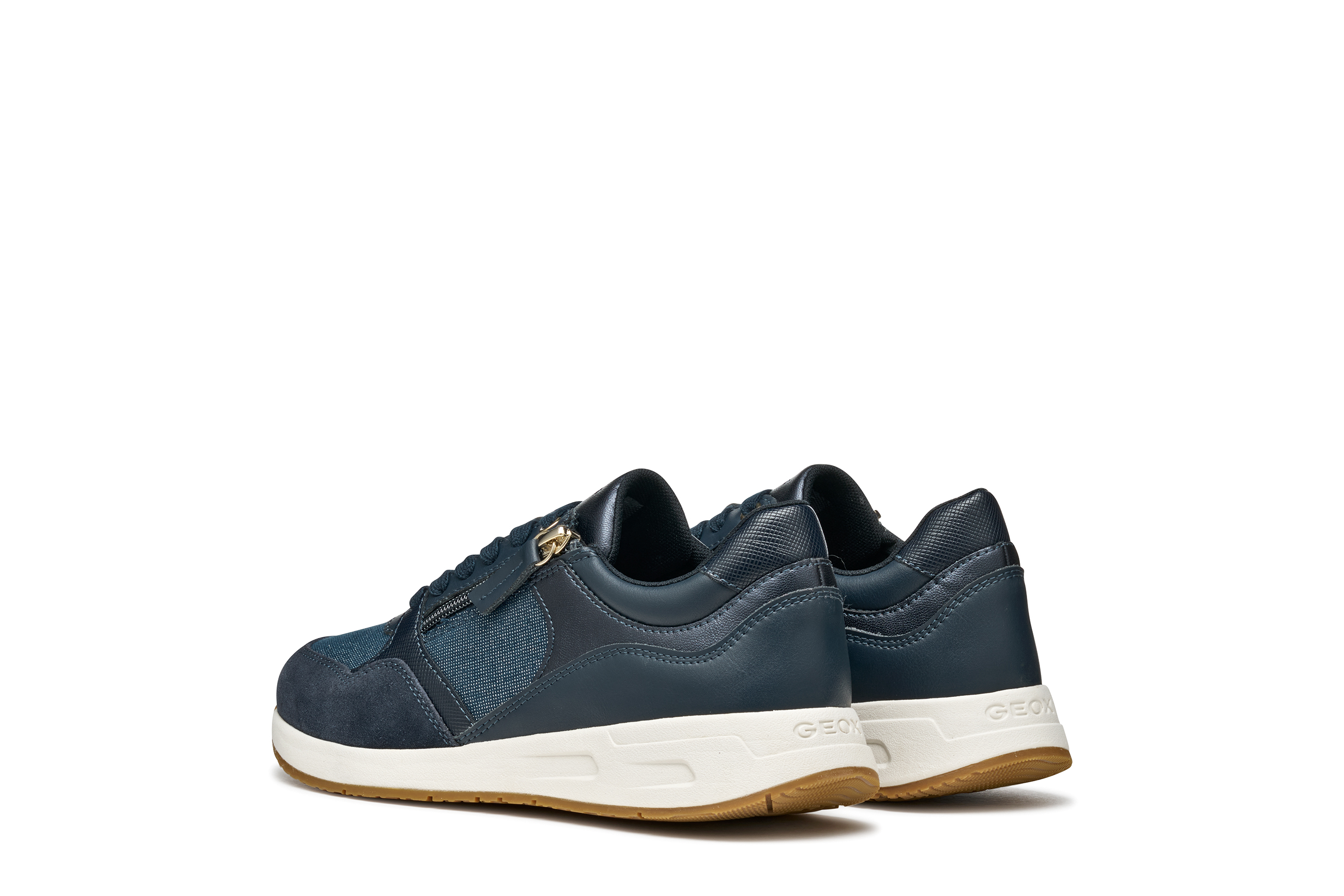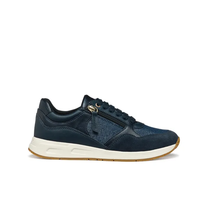 Blauwe Geox sneakers met 4 cm gecompenseerde hak en Respira-technologie voor ademend comfort. Perfect voor stijlvolle, actieve dagen. Bestel nu eenvoudig online