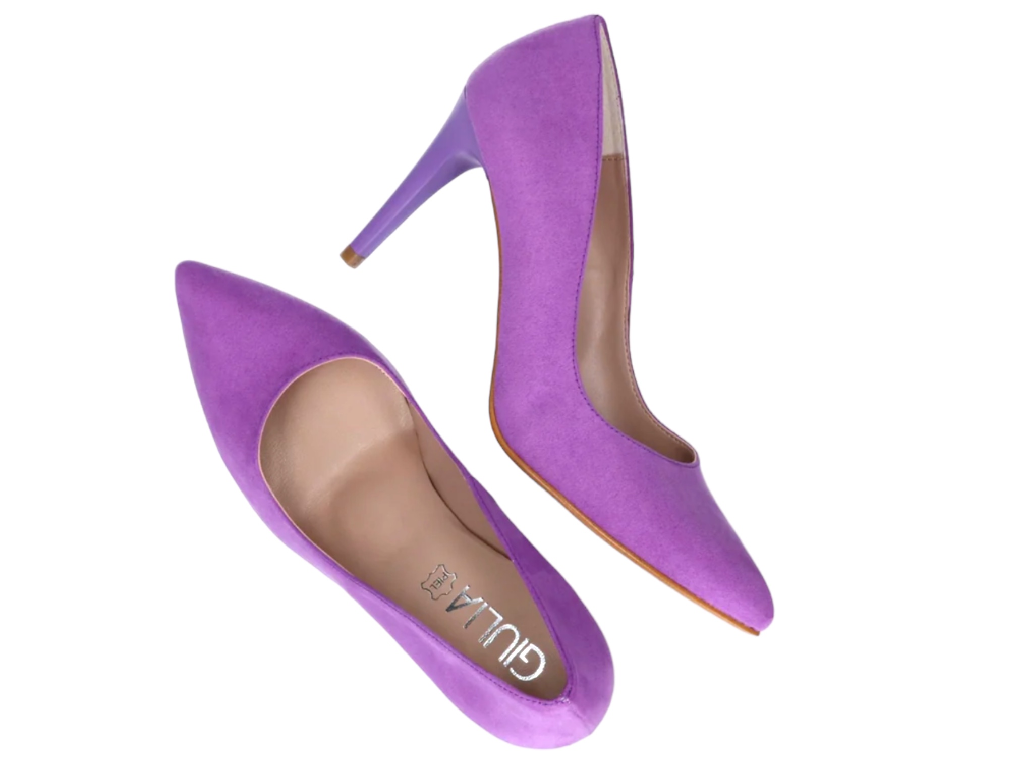 Paarse pumps van Giulia in luxueuze suède-look met elegante 8 cm hak. Perfect voor bijzondere avonden en comfortabele elegantie. Bestel nu eenvoudig online