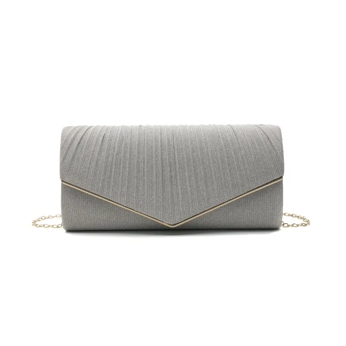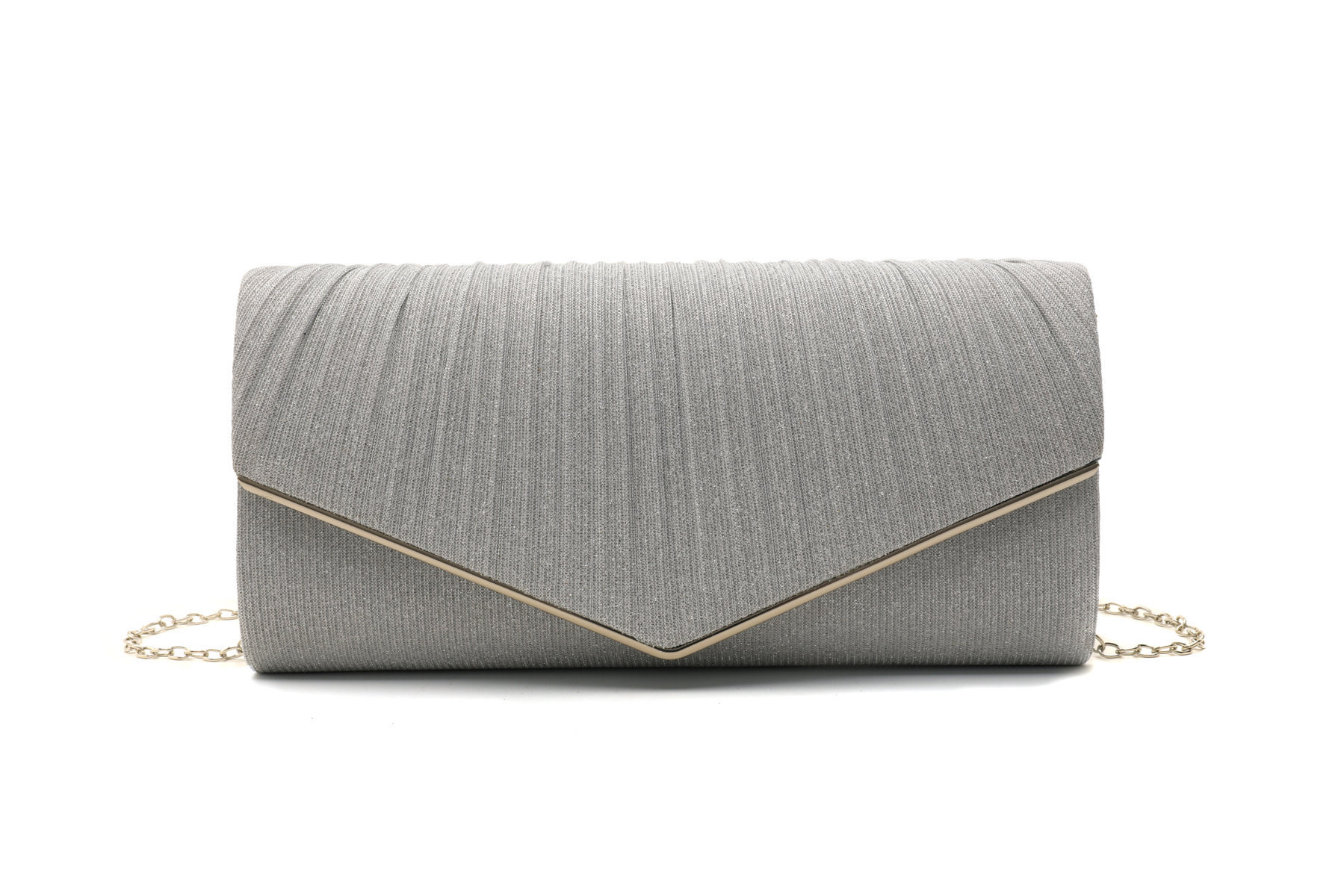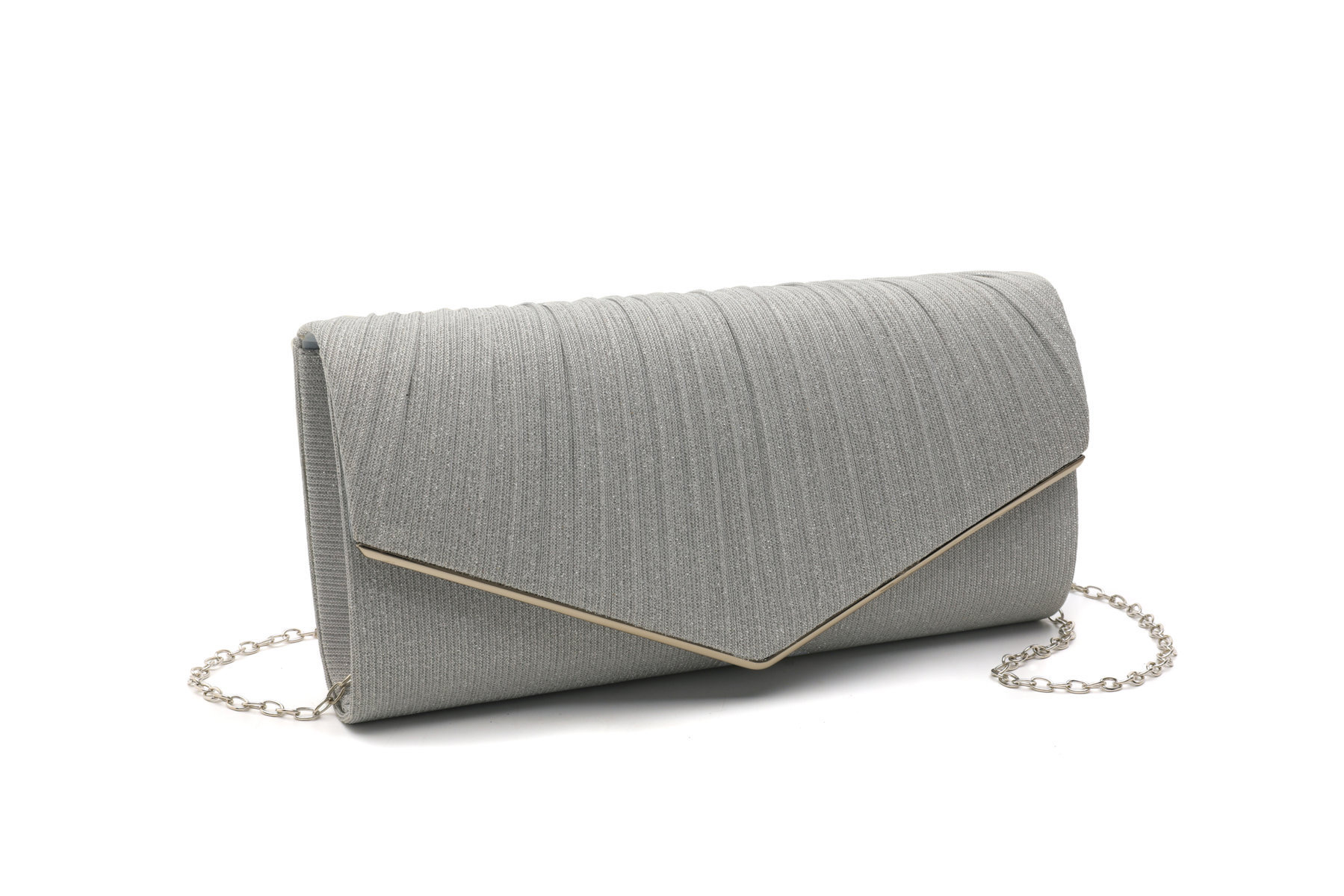 Zilverkleurige clutchtas van innovatief synthetisch materiaal met stijlvolle uitstraling. Inclusief schouderband voor extra draaggemak. Bestel eenvoudig online en straal bij elke gelegenheid
