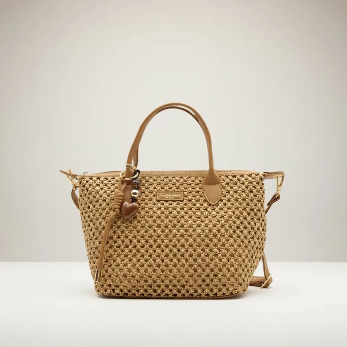 Handtas Beige Stro-effect
