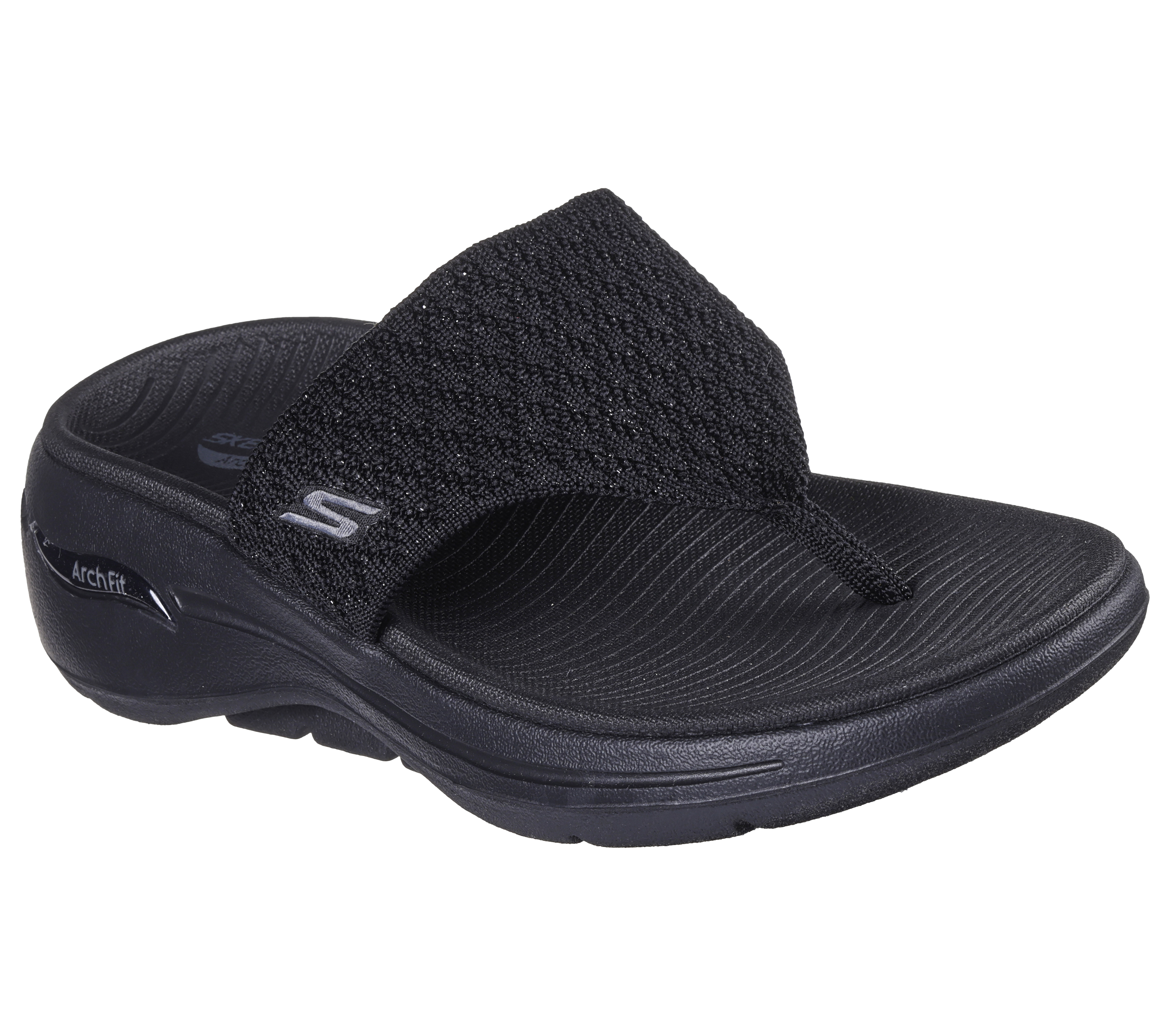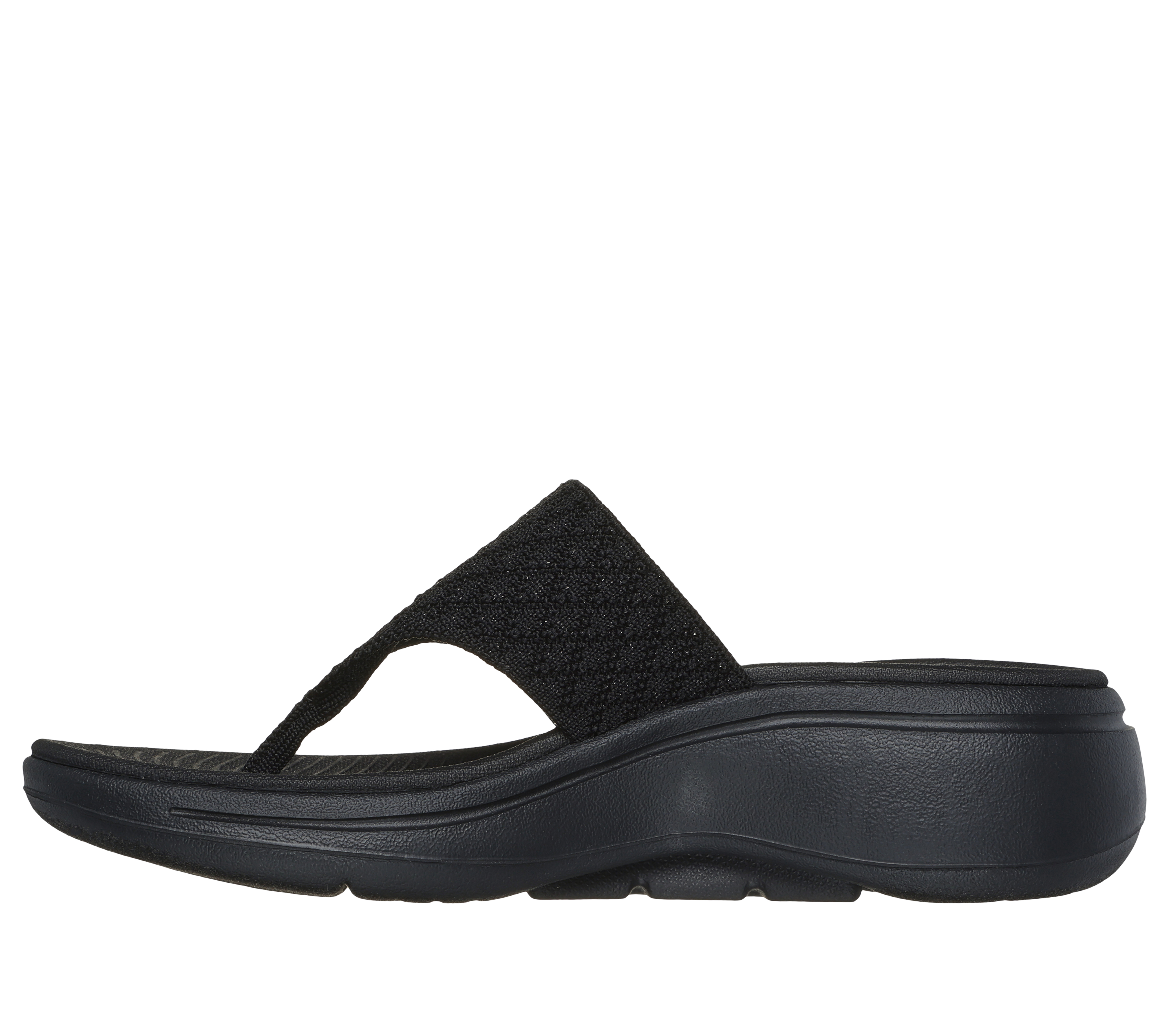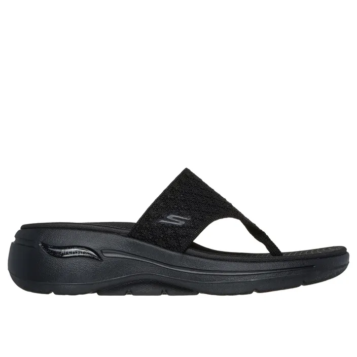 Geef je zomerse look een upgrade met deze zwarte Skechers teenslippers met een elegante 4,5 cm hak. Ideaal voor dagelijks gebruik of een avondje uit, combineren deze slippers moeiteloos stijl met langdurig comfort, zodat je bij elke stap verzekerd bent van een zelfverzekerde uitstraling.