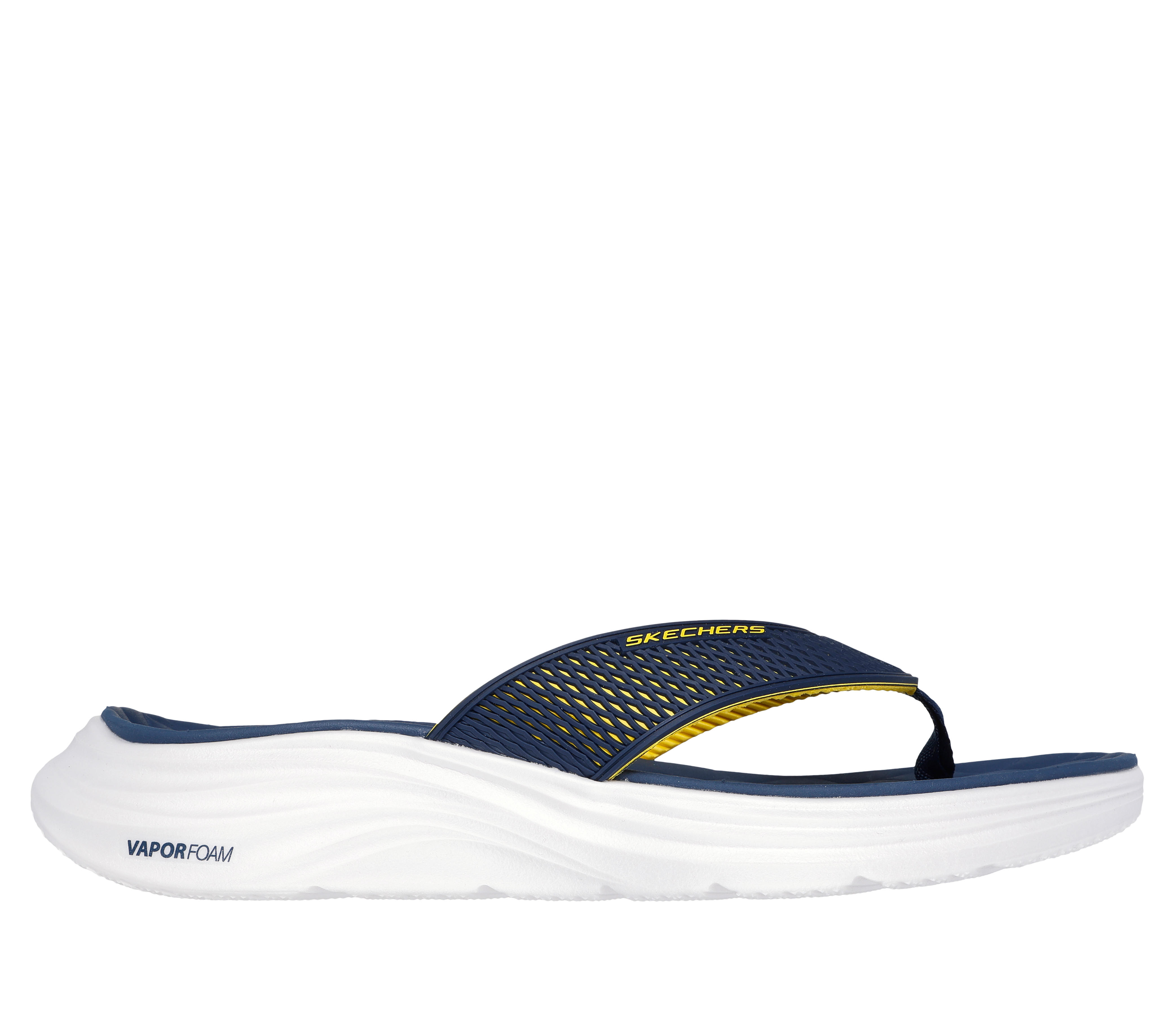 Blauwe Skechers teenslippers met ultralichte Vapor Foam-demping. Perfect voor langdurig comfort en stijl. Bestel direct online