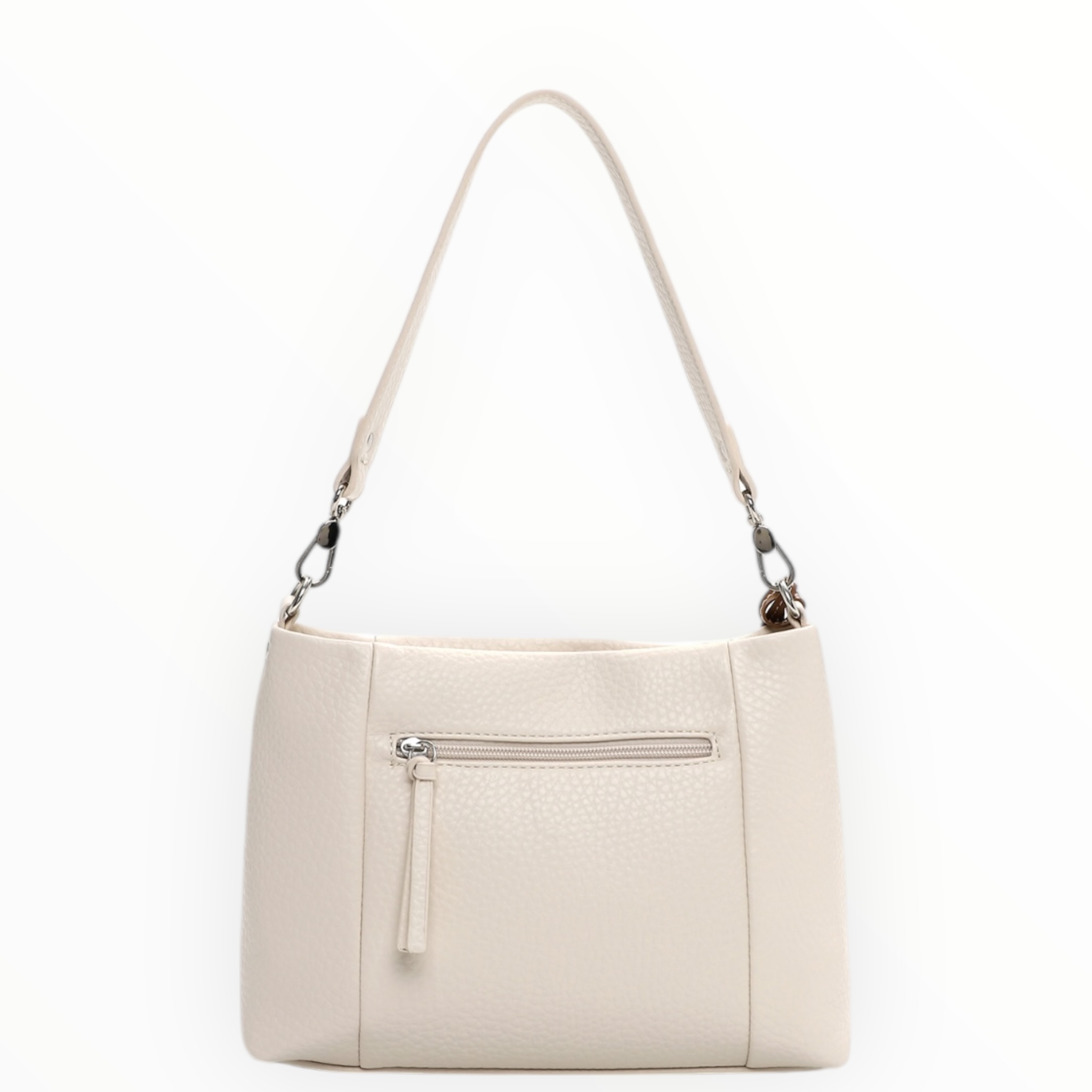 Beige handtas van hoogwaardig kunstleder met een praktische schouderband. Perfect voor dagelijks gebruik en elegantie. Bestel nu online