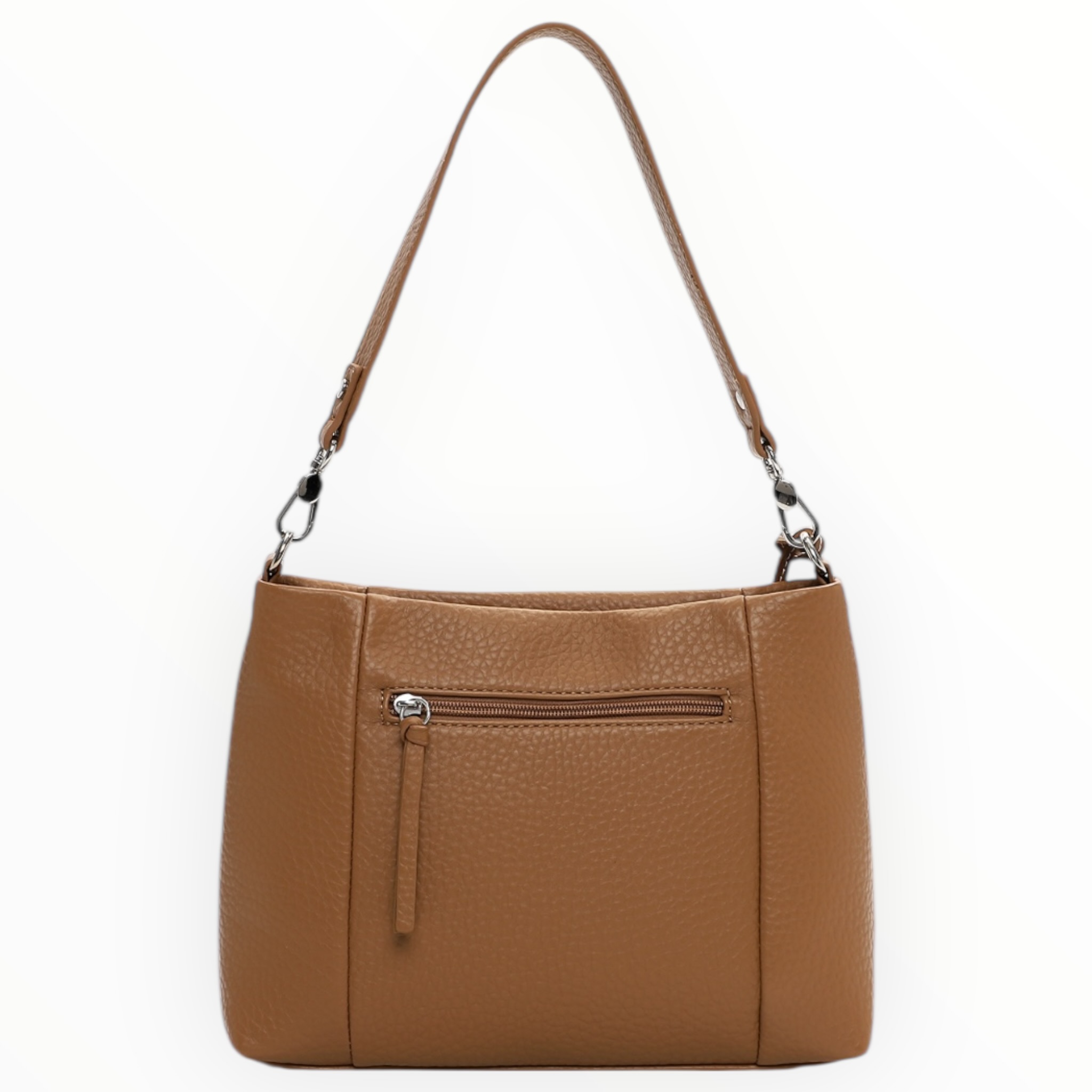 - Tas van hoogwaardig kunstleder die de elegantie van echt leer biedt met extra praktische voordelen. Dit moderne materiaal combineert duurzaamheid, lichtheid en onderhoudsgemak, met een verfijnde afwerking die perfect bij alle stijlen past.