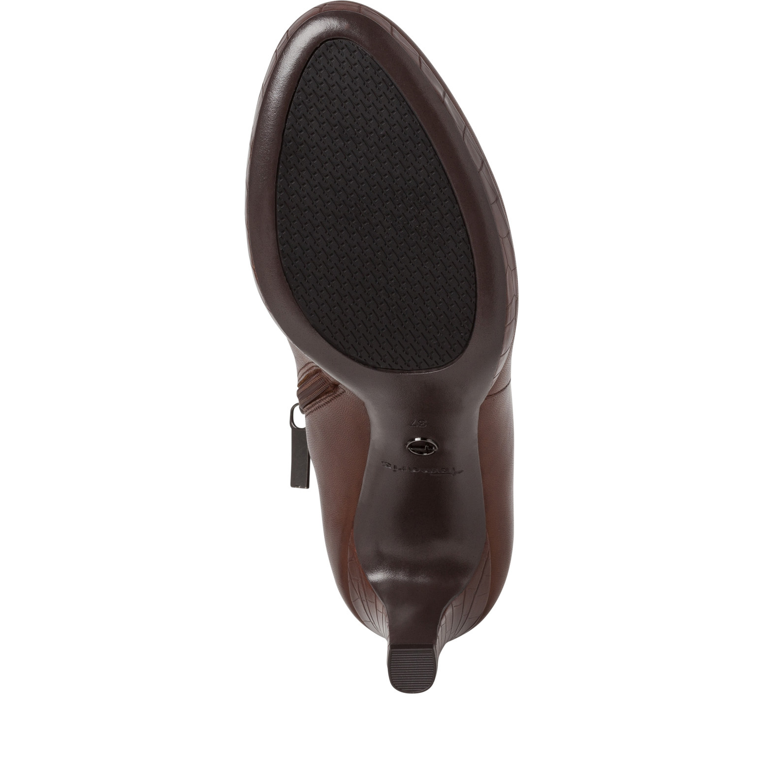 Op zoek naar een enkellaarsje dat moeiteloos elegantie en comfort combineert? Deze bruine leren enkellaarsjes van Tamaris zijn de perfecte keuze voor stijlvolle avonden en formele gelegenheden waar u wilt stralen. De slanke 8 cm hak geeft elke outfit een vrouwelijke touch en zorgt voor een zelfverzekerde houding, of u nu een diner bijwoont of op een feestje schittert.