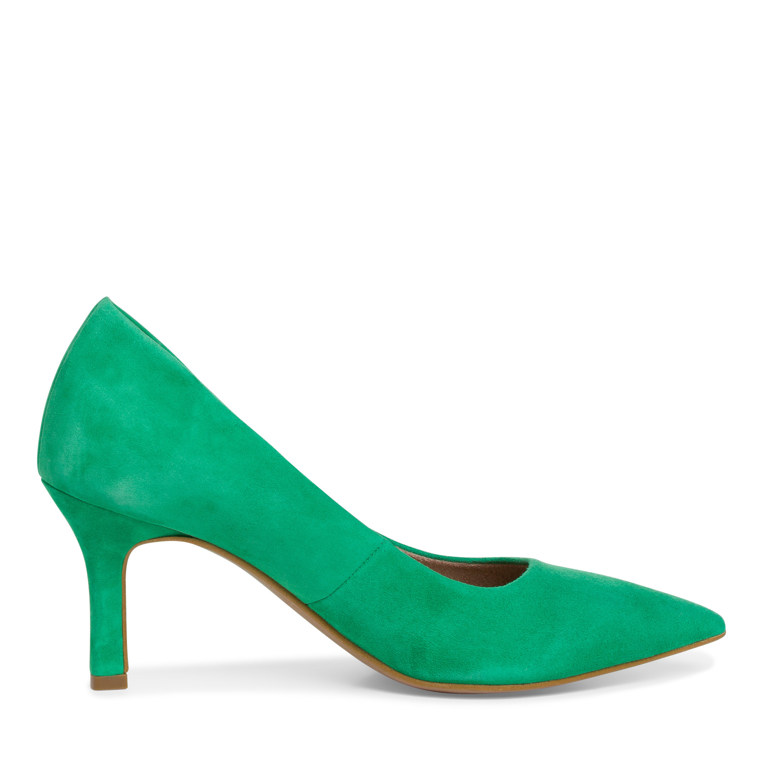 Groene leren pumps van Tamaris met elegante 7,5 cm hak en Touch-it comfortzool. Perfect voor feestelijke gelegenheden. Bestel nu eenvoudig online