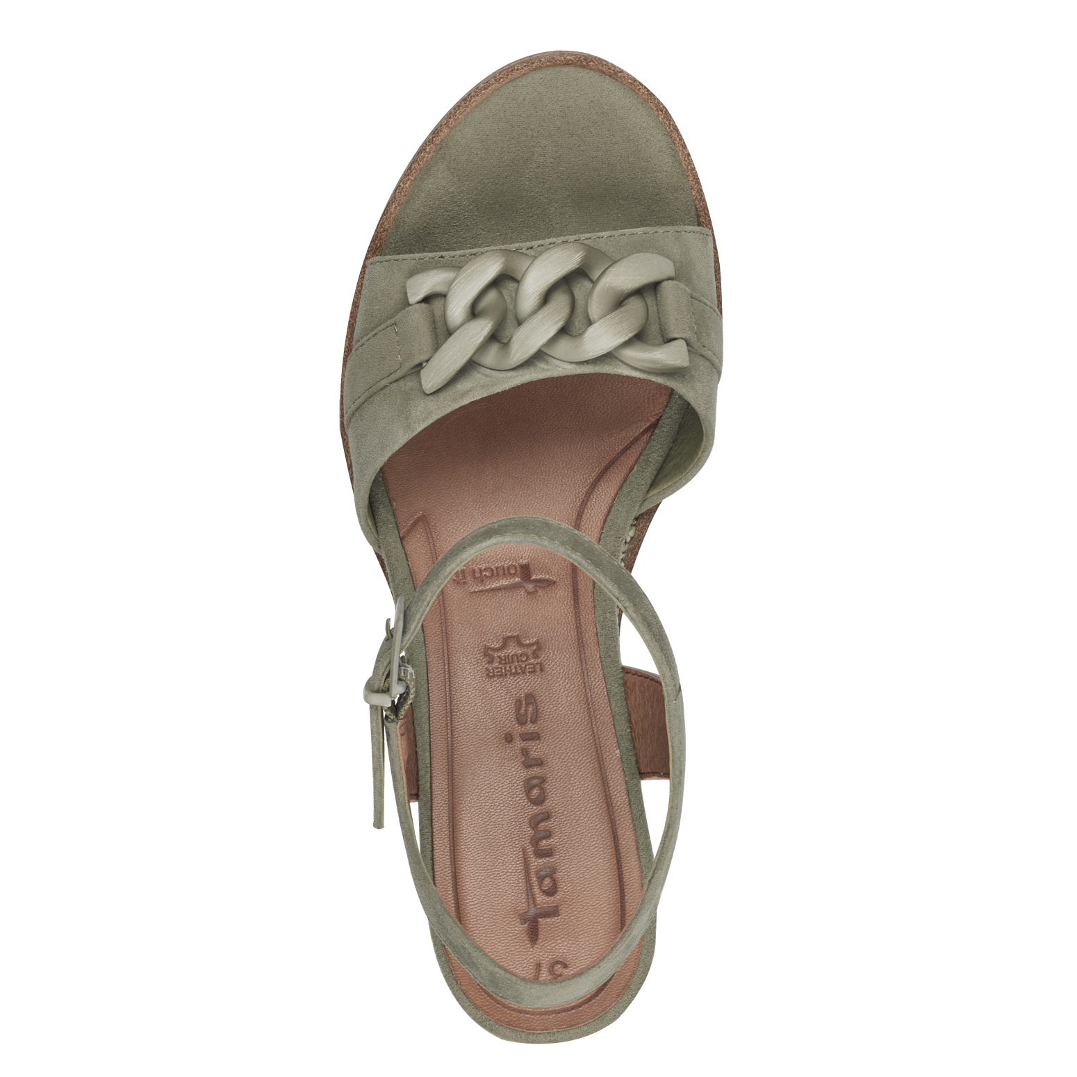 Breng stijl en comfort samen op elk speciaal moment met deze groene Tamaris gecompenseerde sandalen. De verfijnde hak van 7,5 cm geeft je look een vrouwelijke, elegante uitstraling en laat je vol zelfvertrouwen de avond tegemoet gaan, of je nu een zomerse feestavond hebt of een formele gelegenheid bijwoont.