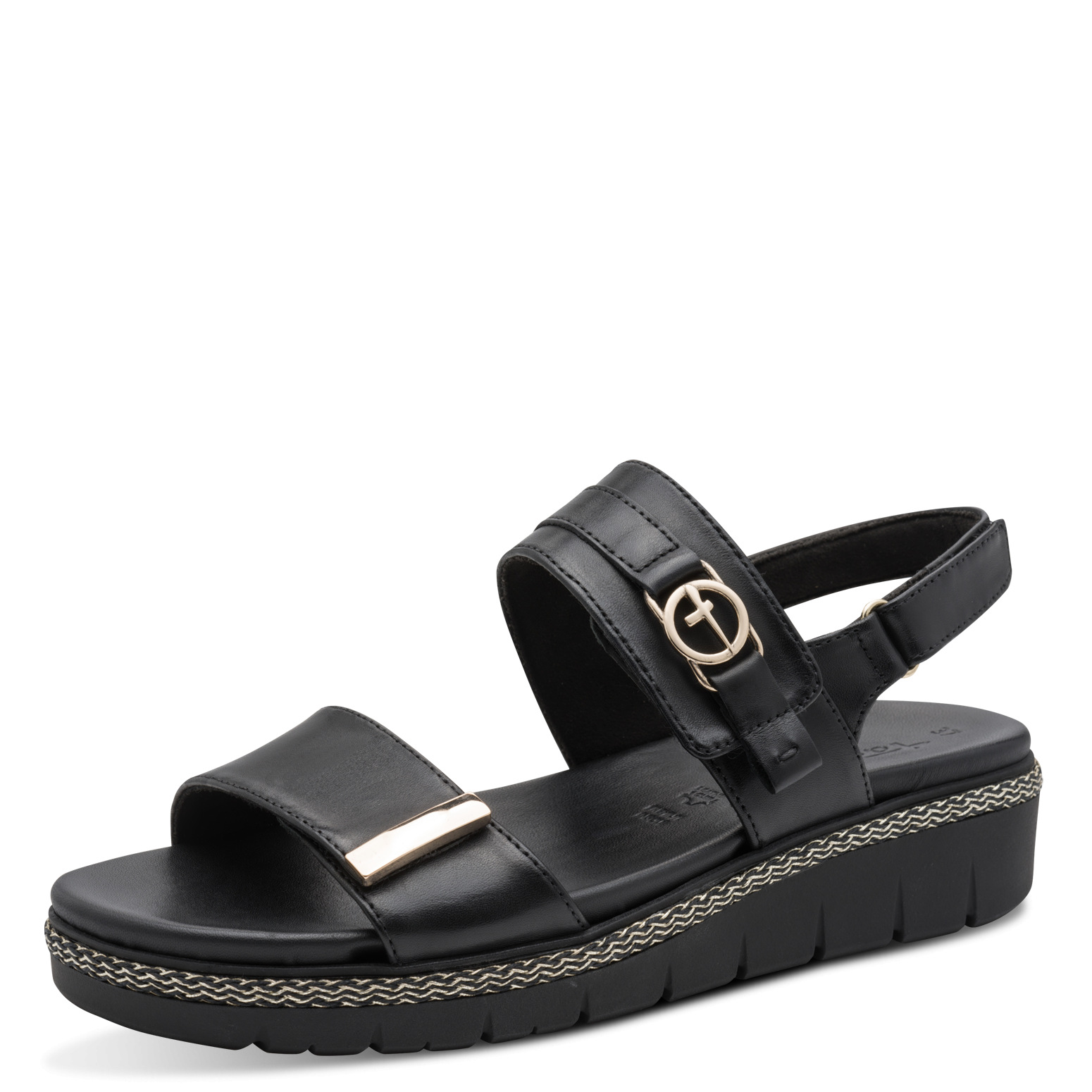 Zoek je een sandaal die er verfijnd uitziet en toch moeiteloos meeloopt van ochtend tot avond? Deze zwarte gecompenseerde sandalen van Tamaris geven je outfit meteen een elegante touch, zonder dat je hoeft in te leveren op stabiliteit.