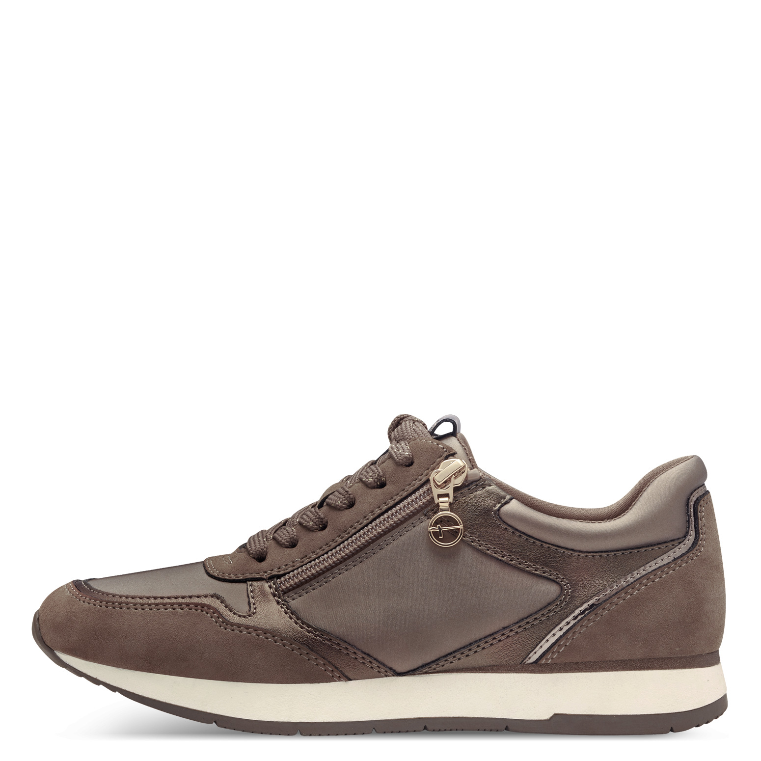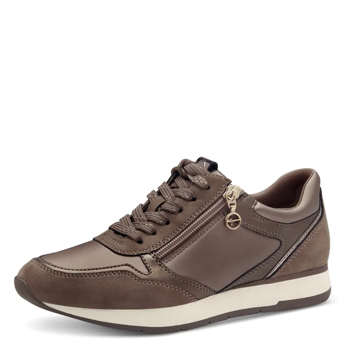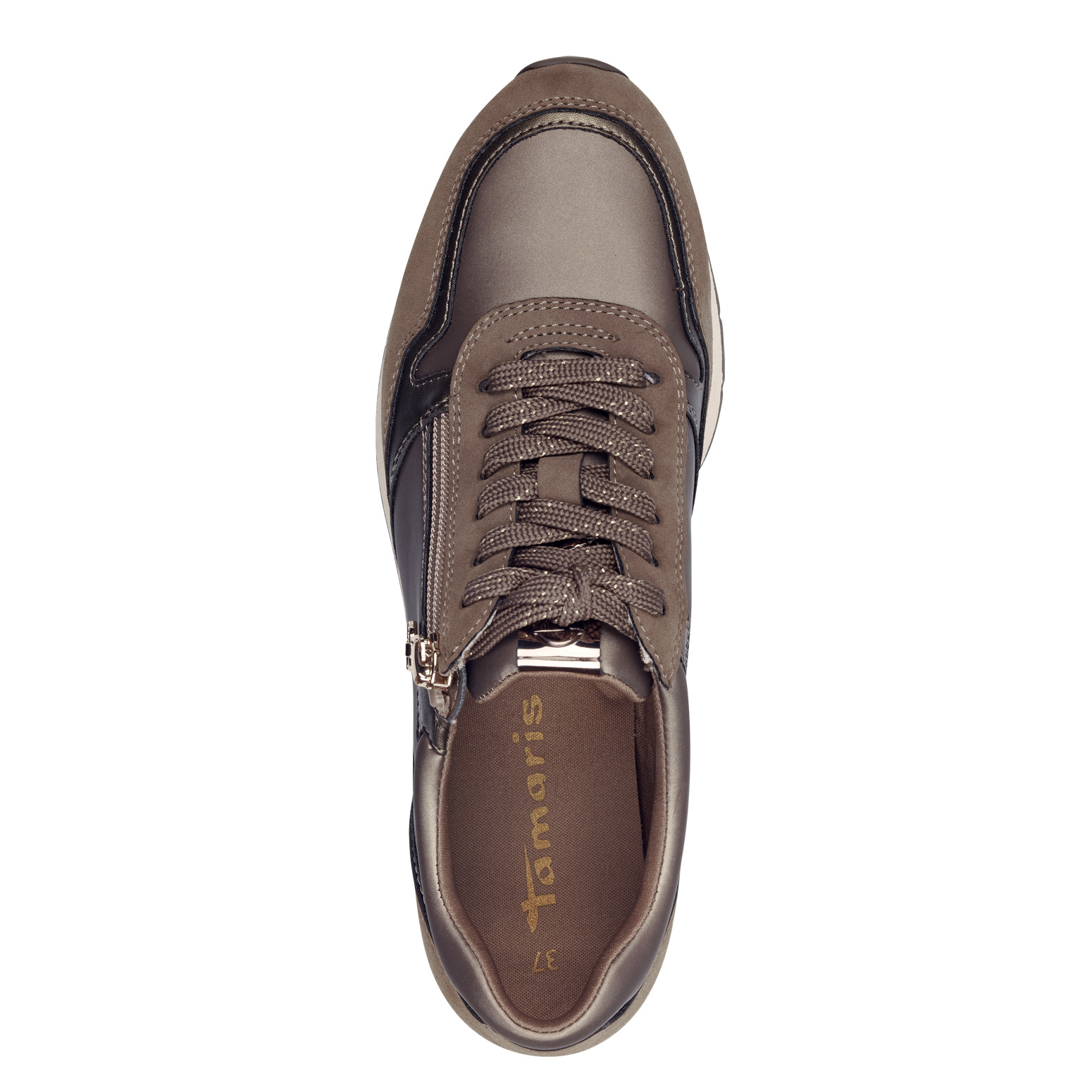 Tamaris sneakers in taupe met 2,5 cm hak en uitneembare zool voor ultiem comfort. Perfect voor dagelijks stijlvol gemak. Bestel nu eenvoudig online