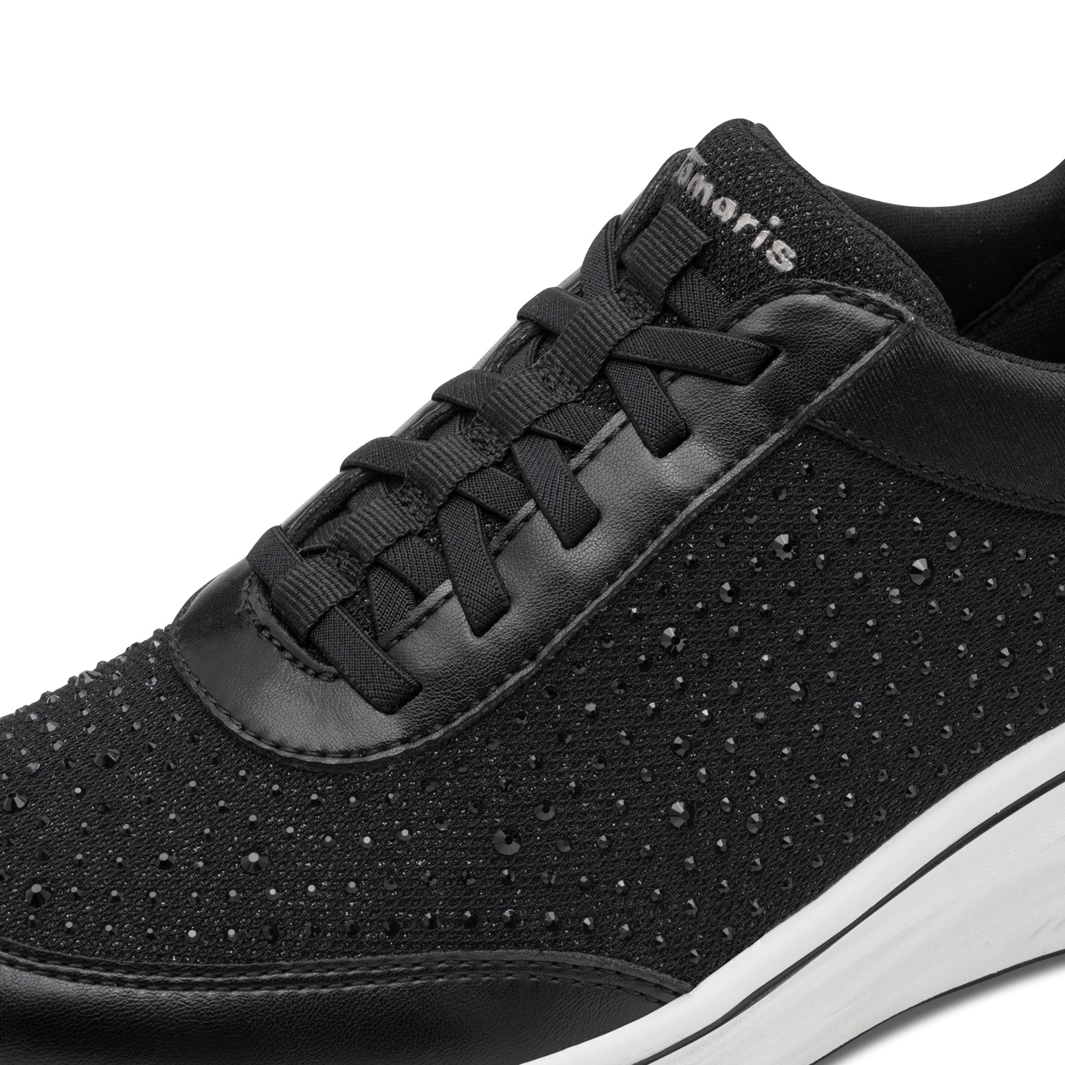 Met deze zwarte gecompenseerde sneakers van Tamaris voeg je moeiteloos elegantie en comfort toe aan je dagelijkse look. De subtiele 5 cm hak geeft een vrouwelijke uitstraling zonder in te leveren op draaggemak, perfect voor een dynamische dag op kantoor of een ontspannen uitstapje in de stad.