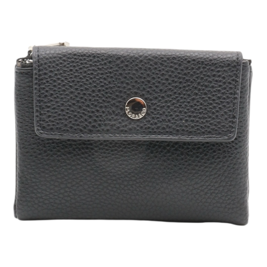 Porte-monnaie Flora&Co en cuir synthétique noir, élégant et résistant. Rangement organisé pour cartes, billets et monnaie. Commandez-le en ligne dès maintenant