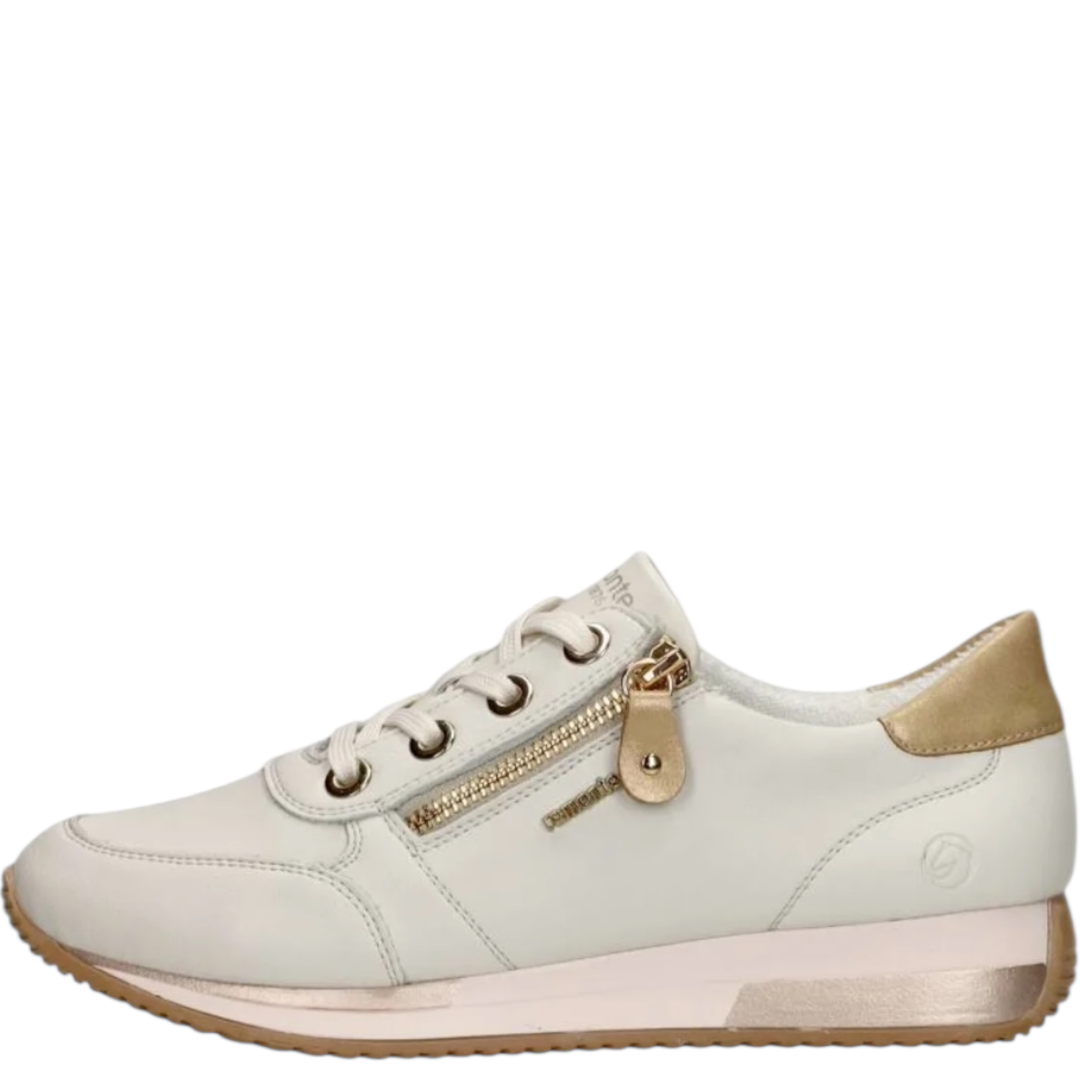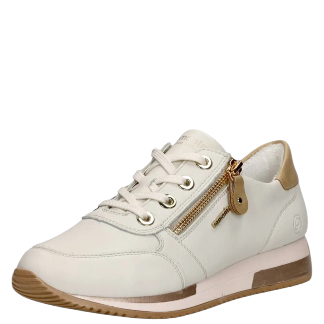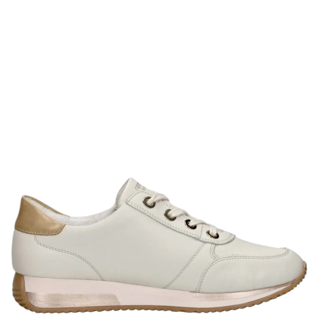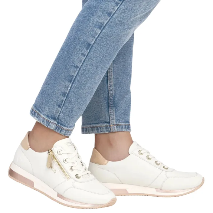 Remonte Rock Alburi Almere Sneaker avec plus de largeur pour un excelent chaussant-semelle amovible avec voute plantaire pour amortir les chocs- en blanc cassé combi.