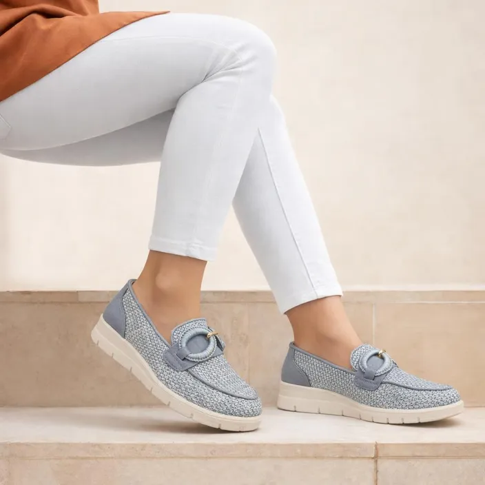 Dans la catégorie dames mocassins à talon compensé, il offre un équilibre agréable entre maintien et liberté de mouvement. Sa forme à largeur normale convient à la plupart des pieds et accompagne naturellement la marche, que vous soyez en ville, au bureau ou en déplacement. C’est le genre de chaussure qu’on enfile sans réfléchir et qui reste agréable, même quand le planning s’allonge.