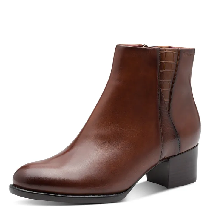 Bottines Tamaris à talon 5cm en cuir et textile, élégantes et stables. Confort Touch-it et antiglisse pour vos journées actives. Commandez en ligne dès maintenant