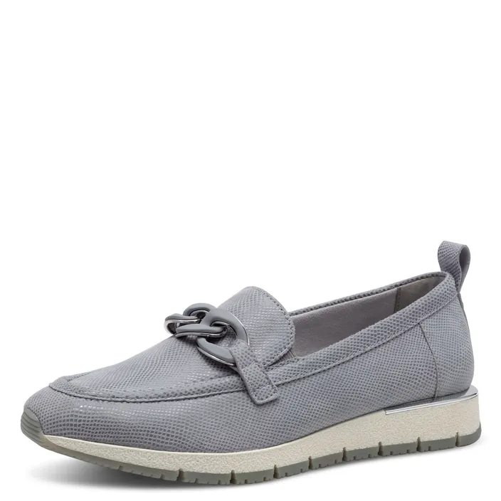 Adoptez une allure raffinée sans faire de compromis sur le confort avec ces mocassins Tamaris en cuir bleu et bleu-ciel. Leur silhouette intemporelle s’accorde aussi bien avec vos tenues de bureau qu’avec un look décontracté pour le week-end, tout en vous offrant la légèreté et la flexibilité dont vous rêvez pour vos journées actives.