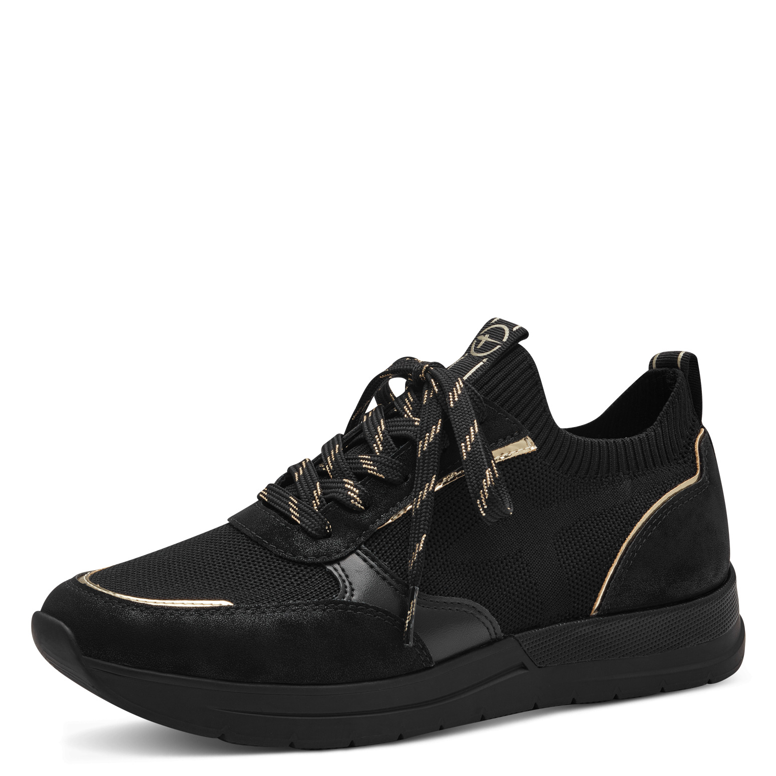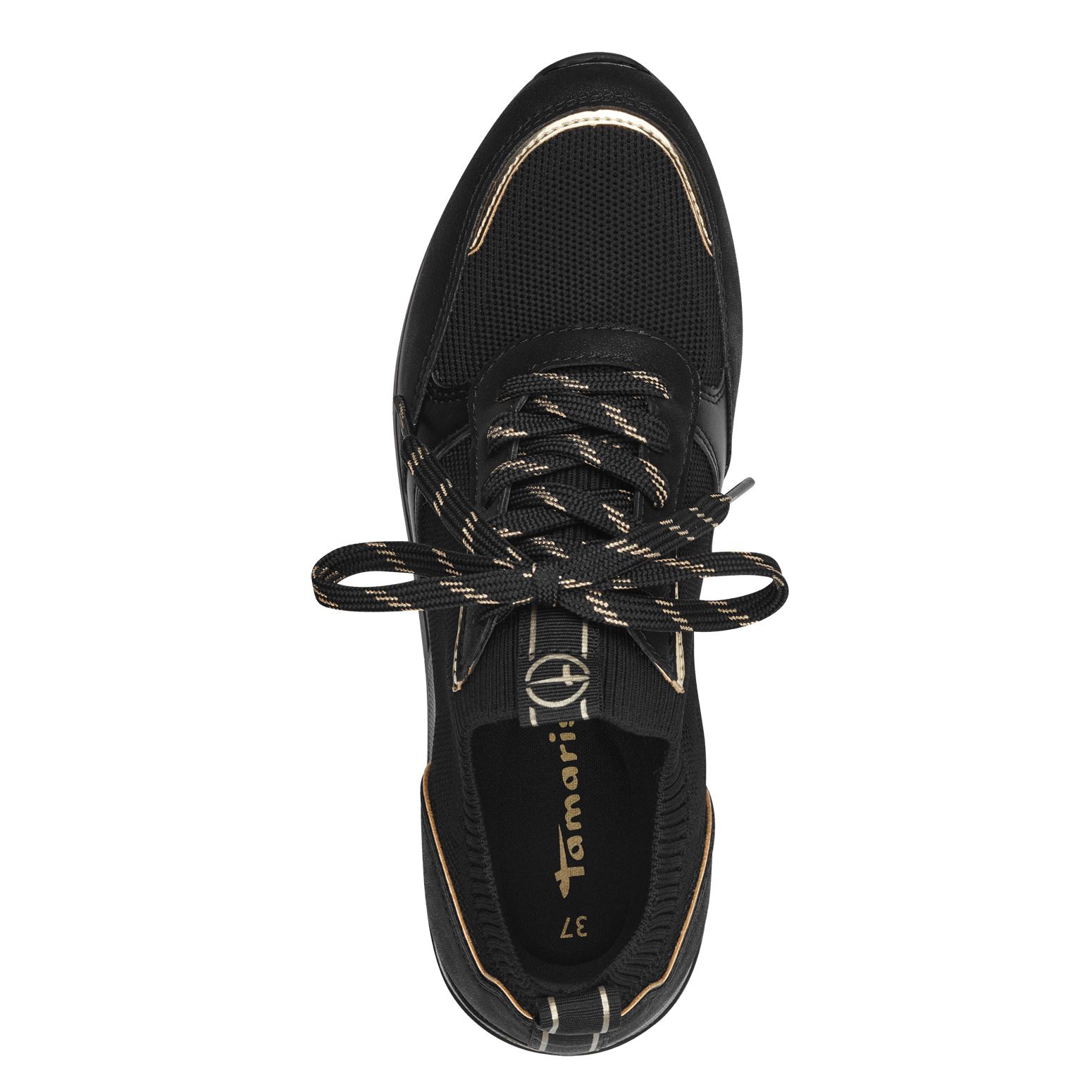 Sneakers compensées noires Tamaris avec talon 5 cm, alliant élégance et confort. Parfaites pour sublimer vos journées actives. Commandez en ligne dès maintenant